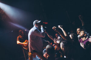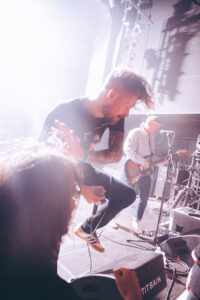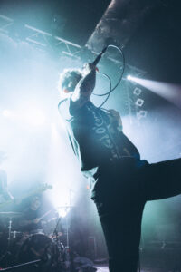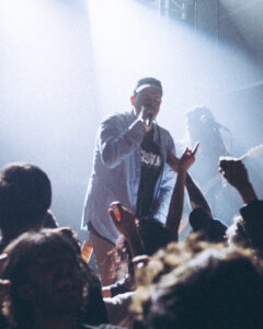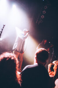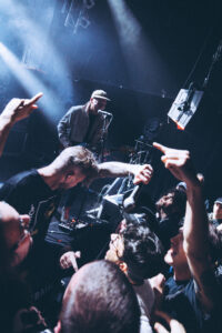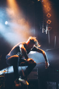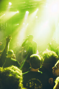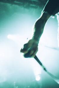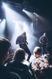 21h50. C’est l’heure. Defeater. Les pionniers du hardcore mélodique montent sur scène. La salle est comble, moite, vibrante. Je me place derrière, près du batteur, prêt à tout capturer. Derek se fait attendre quelques secondes avant d’apparaître, dos au public, le groupe lance Bastards. Les premières notes résonnent, et tout explose : stage dives, cris, bras levés. “I hope this finds you well”, hurle la foule d’une seule voix.
