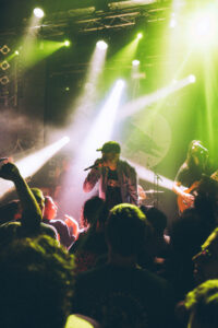 21h, Crime In Stereo prend la relève. Kristian, le chanteur, se transforme : lui d’ordinaire réservé, se déchaîne totalement sur scène. En 40 minutes, le groupe livre une prestation dense, sincère, qui capte autant les anciens fans que les curieux. Dans la salle, quelques stage dives, des pogos légers : pas de violence, juste de la passion. Derrière l’objectif, je m’amuse avec les couleurs, les flous, l’énergie.