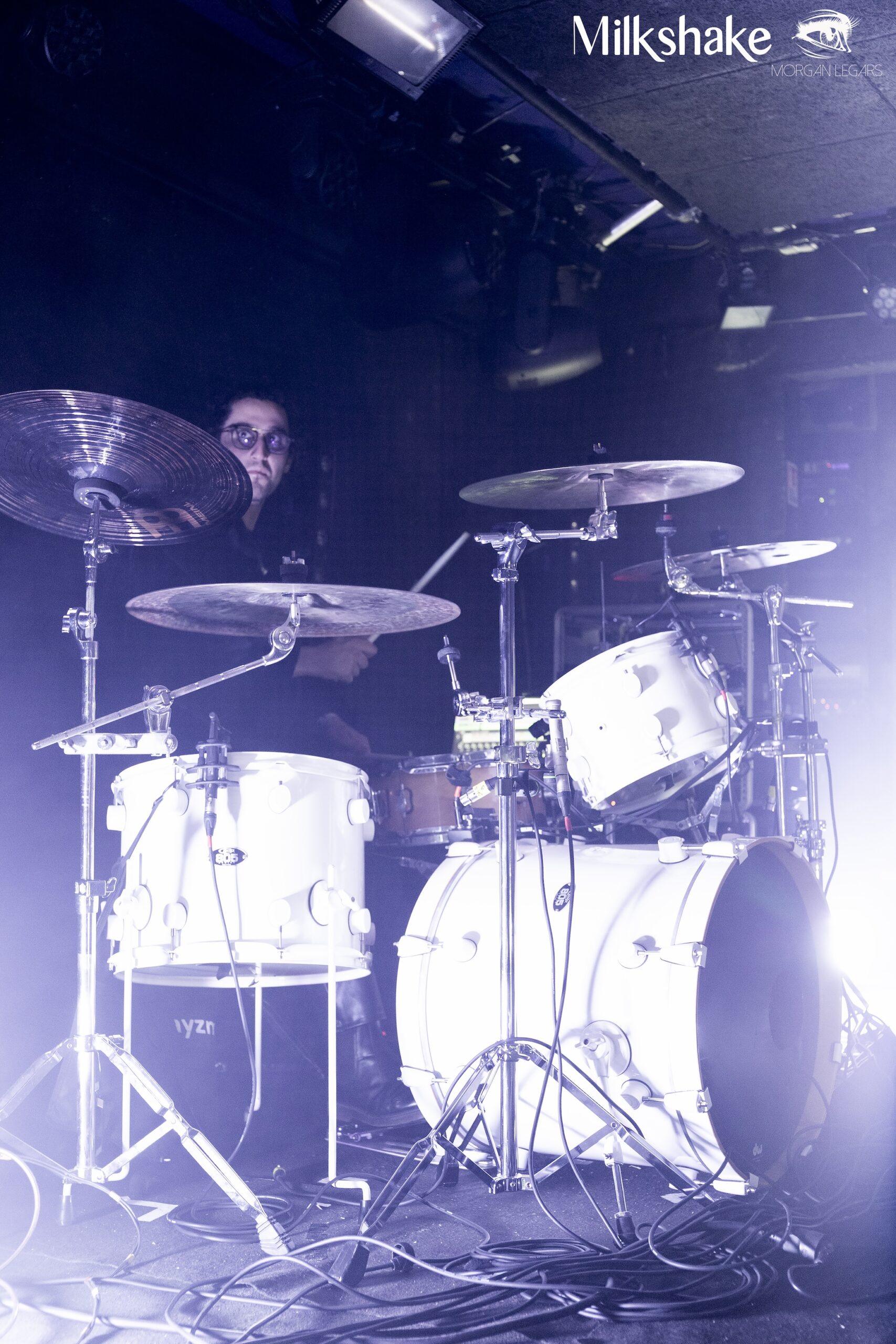 In the green room the energy is palpable, Nathan (NDKH 93‘s drummer) is trying his hand at eye make-up, getting eyeshadow all over his face and ending up with a panda look. Without make-up remover wipes, he’s distraught, and the others joke that, hidden behind his drums, nobody will notice him anyway, so the atmosphere is good-natured and relaxed. The hour ticks by and it’s already time for NDKH 93 to take to the stage.