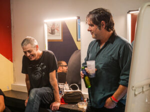Juste avant de monter sur scène, on profite d’un petit moment pour improviser quelques photos en loge. Le batteur, un peu timide devant l’objectif, contraste avec les autres qui rigolent et se détendent. Pas de rituel bizarre avant le show : juste droit sur scène quand l’heure arrive.