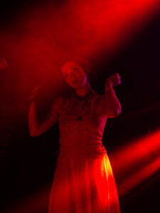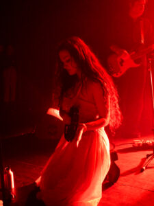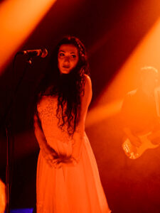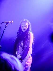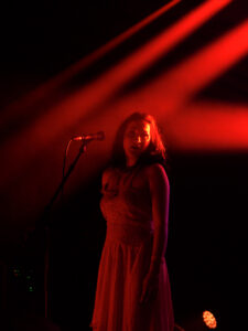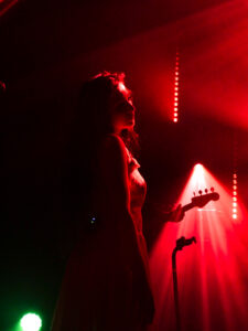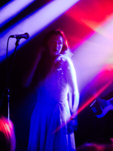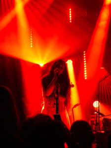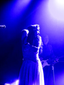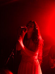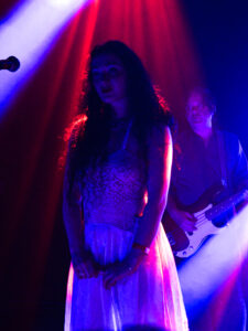 Entre les morceaux et après le concert, la chanteuse danse et rigole avec le batteur. On a discuté avec elle de son autre projet, Chokecherry, et elle nous a confié son envie de tourner en Europe. C’était sa première fois en France, et elle a adoré cette expérience.