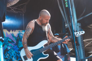 Le bassiste va dans la fosse, au milieu du circle pit, la poussière vole !