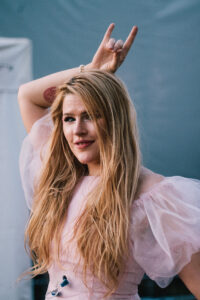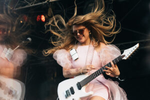 There she was: a woman in a puffy pink princess dress, with long red hair flying everywhere thanks to stage fans, it was surreal and totally mesmerizing. The visual clashed gloriously with the sound: brutal pop with a wild mix of screamed and clean vocals.