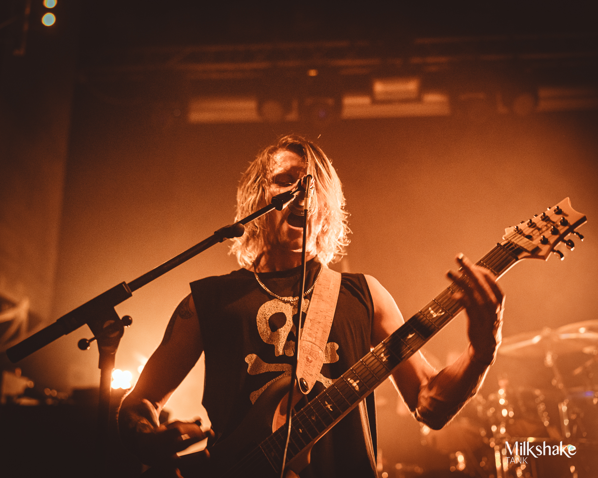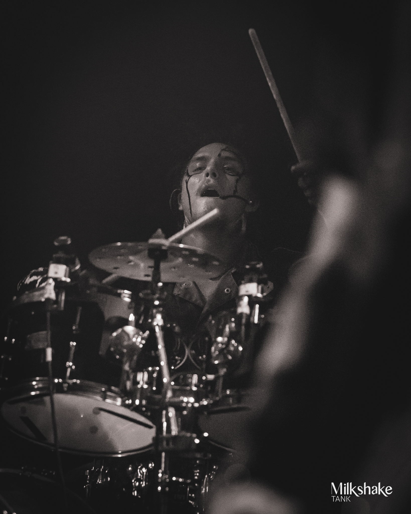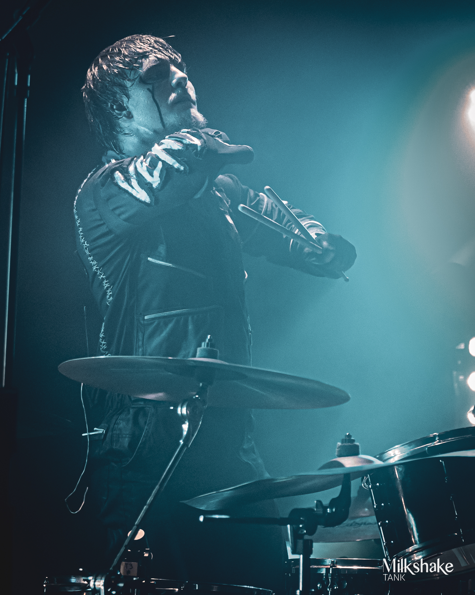 Before starting their final encore song: “Asylum“, Griffin asks the audience for a favor: “turn this room over to me”. The atmosphere is now more than overexcited, and all inhibitions fall away in a joyous mess, with drummer Simon throwing his sticks in the air to catch them directly behind and hit them hard, it’s fascinating.