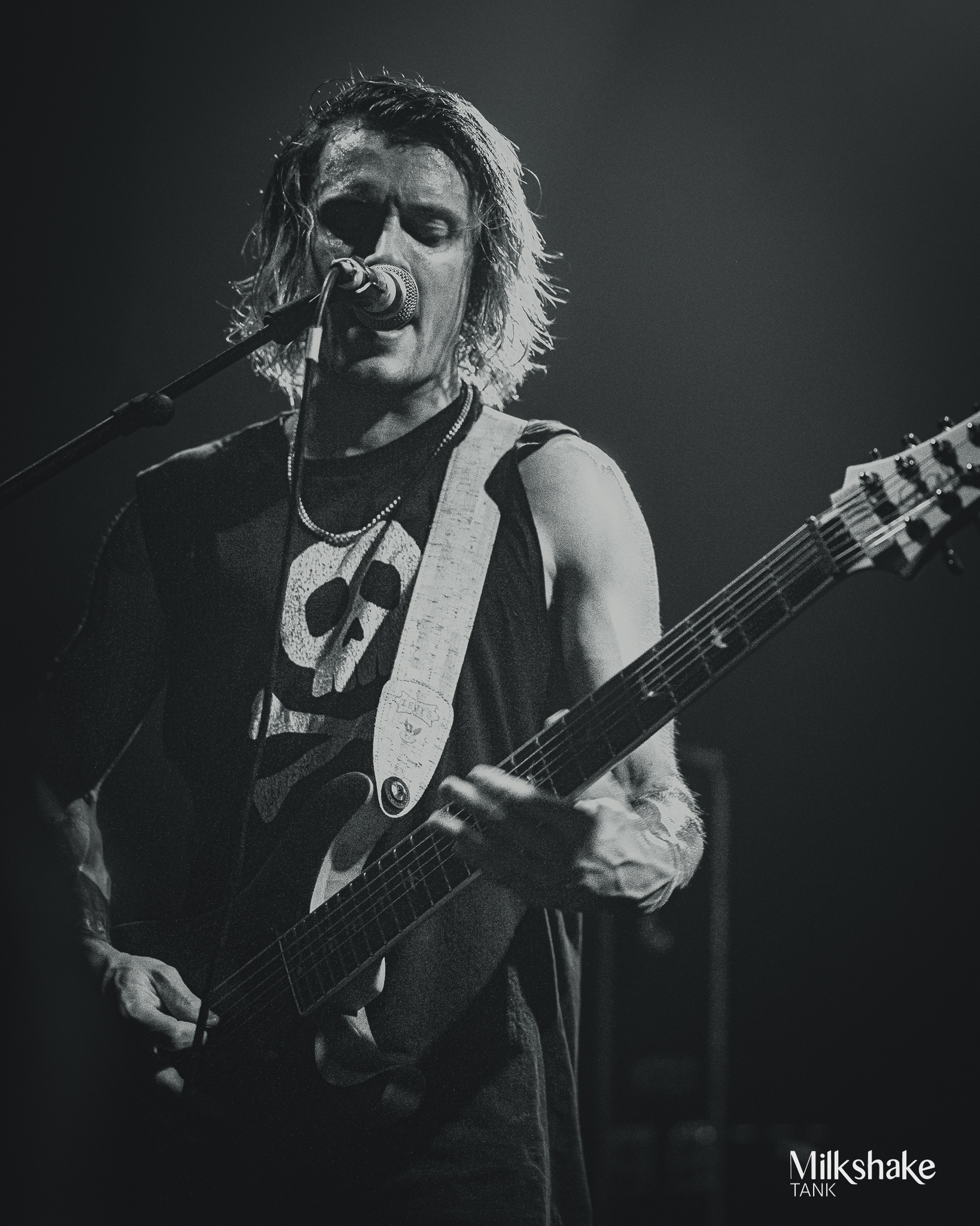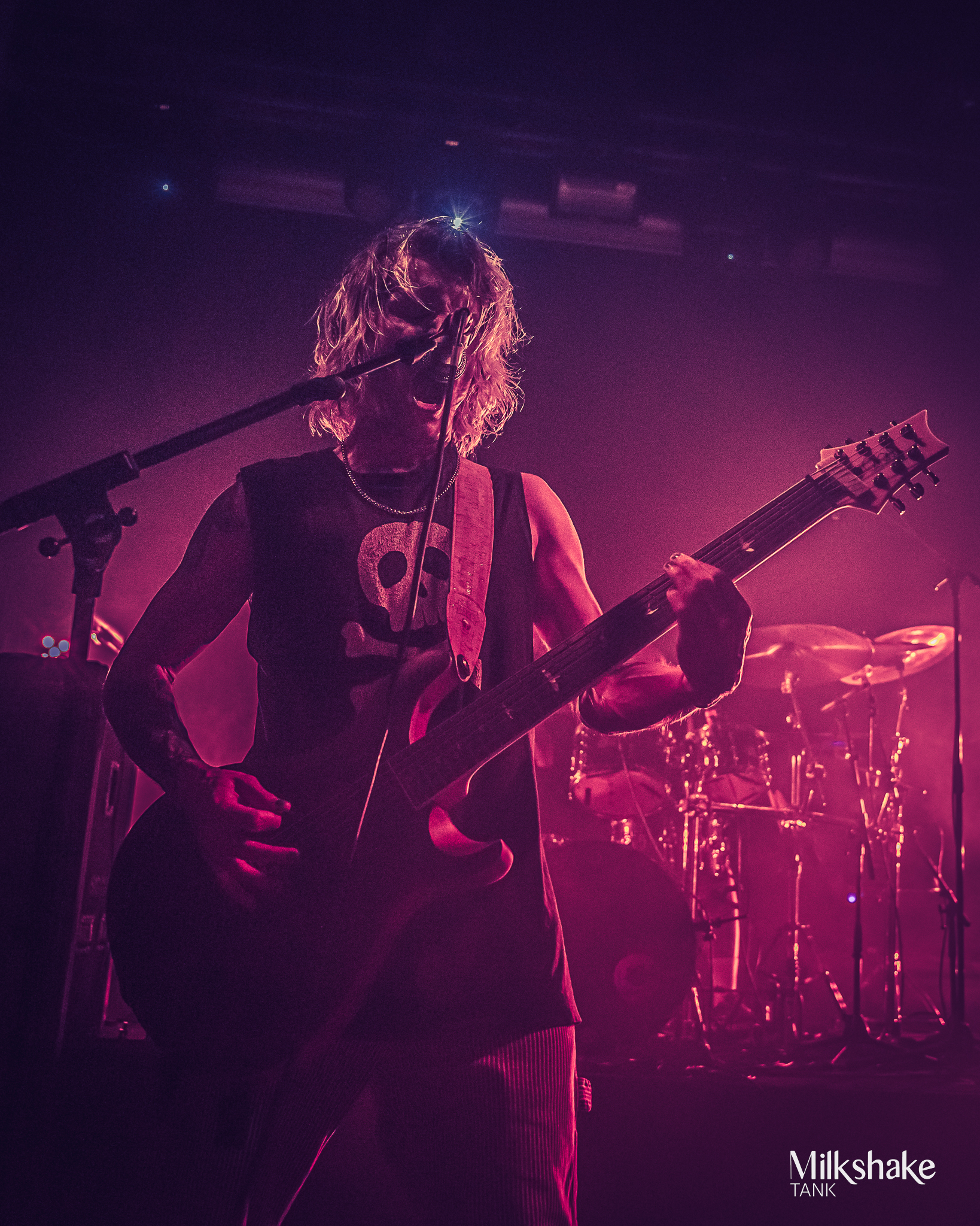Petit Bain venue is now packed to the rafters, and the excitement of the fans is palpable. The lights go down, plunging the room into darkness before the first chords of Profiler ring out. The band opens the evening with the track Hello yes it’s, which makes everyone agree. These three young men from Bristol deliver refreshing Nu Metal of the highest quality! They follow up with tracks such as “Identify”, “Operator” and “Animo“, and demonstrate their boundless energy, with every note electrifying the audience. Mike‘s vocals are top-notch, and Oscar on drums impresses with his great mastery. They all seem very young and casual at first, but there’s no doubt that they’re hard workers, given the musical quality they offer! They are very communicative with the audience, who are very receptive to what they have to offer. Their set ended with the excellent track “Zero“. For me, who didn’t know this band before, this is a truly wonderful discovery. By the way, Simon (Vended‘s drummer) stayed on the side of the stage the whole time to move to the beat!