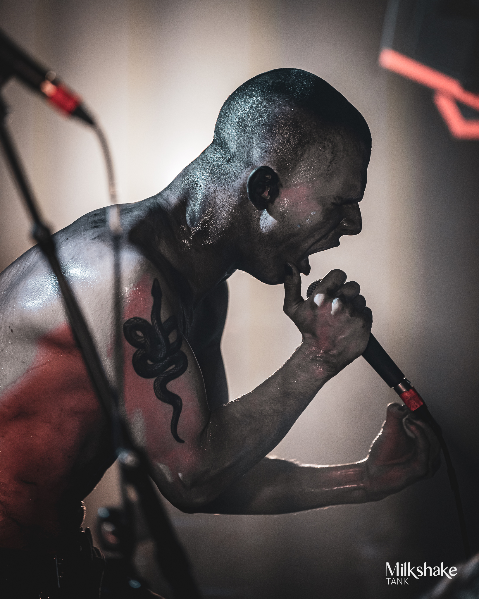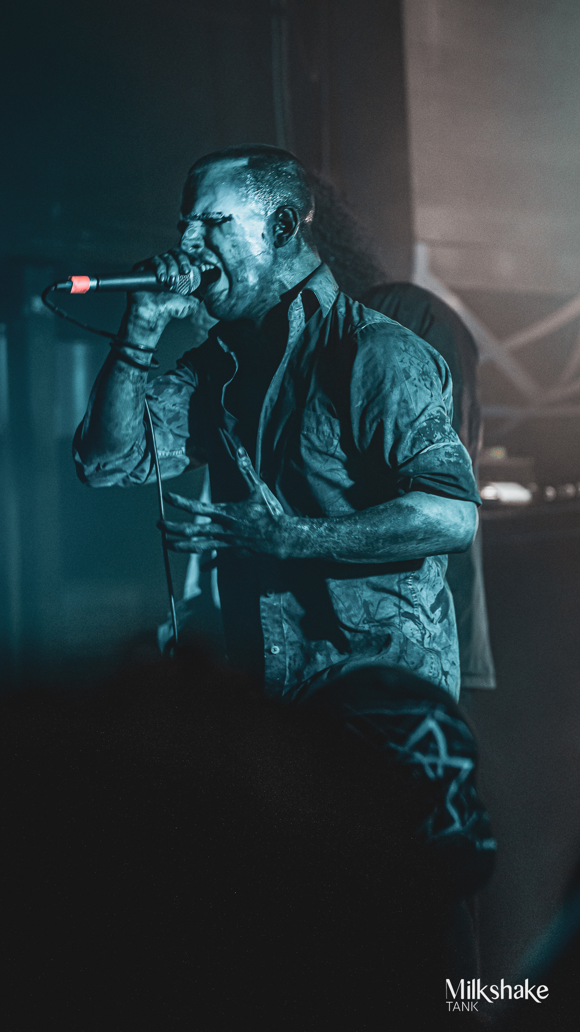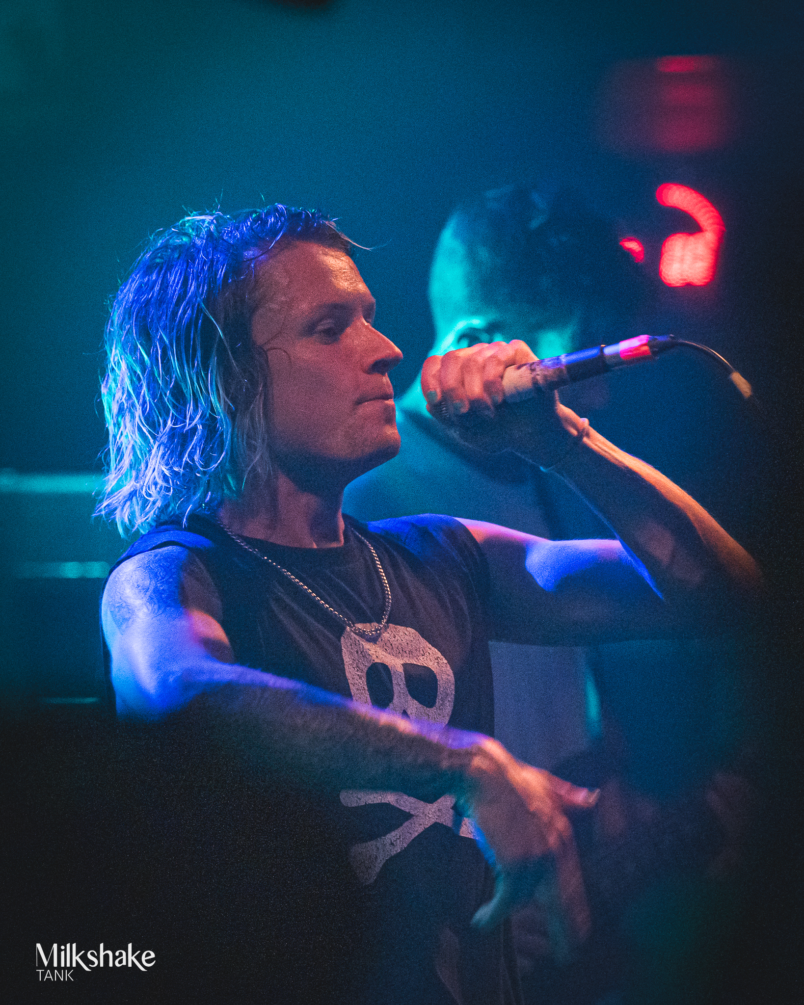 At last, Vended take to the stage, setting off a wave of enthusiastic shouts. Their set kicks off with the title track “Nihilism“, which immediately gets everyone on the same wavelength, and it’s Moshpits from the very first seconds! On “Am I The Only One“, Griffin yells out “get moving in the pit, we want to know how crazy you are in Paris”, and of course the audience complies in a fraction of a second! Before starting “Burn My Misery“, Cole (guitarist) shouts to his bandmates that “it’s fucking hot in here”, and indeed, the ceiling and walls are dripping with the stifling heat and everyone is sweating! By the end of this track, the crowd is jumping up and down, so much so that I can feel it reassuring to feel the barge jiggle so much! Before starting “Where The Honesty Lies“, Griffin goes shirtless, because of this damn heat, his warrior paintings have almost all disappeared because of the sweat, but that doesn’t stop him from sending us warrior growls! This set is a blast of power, with Connor at the top of his game despite his unsuccessful fishing.