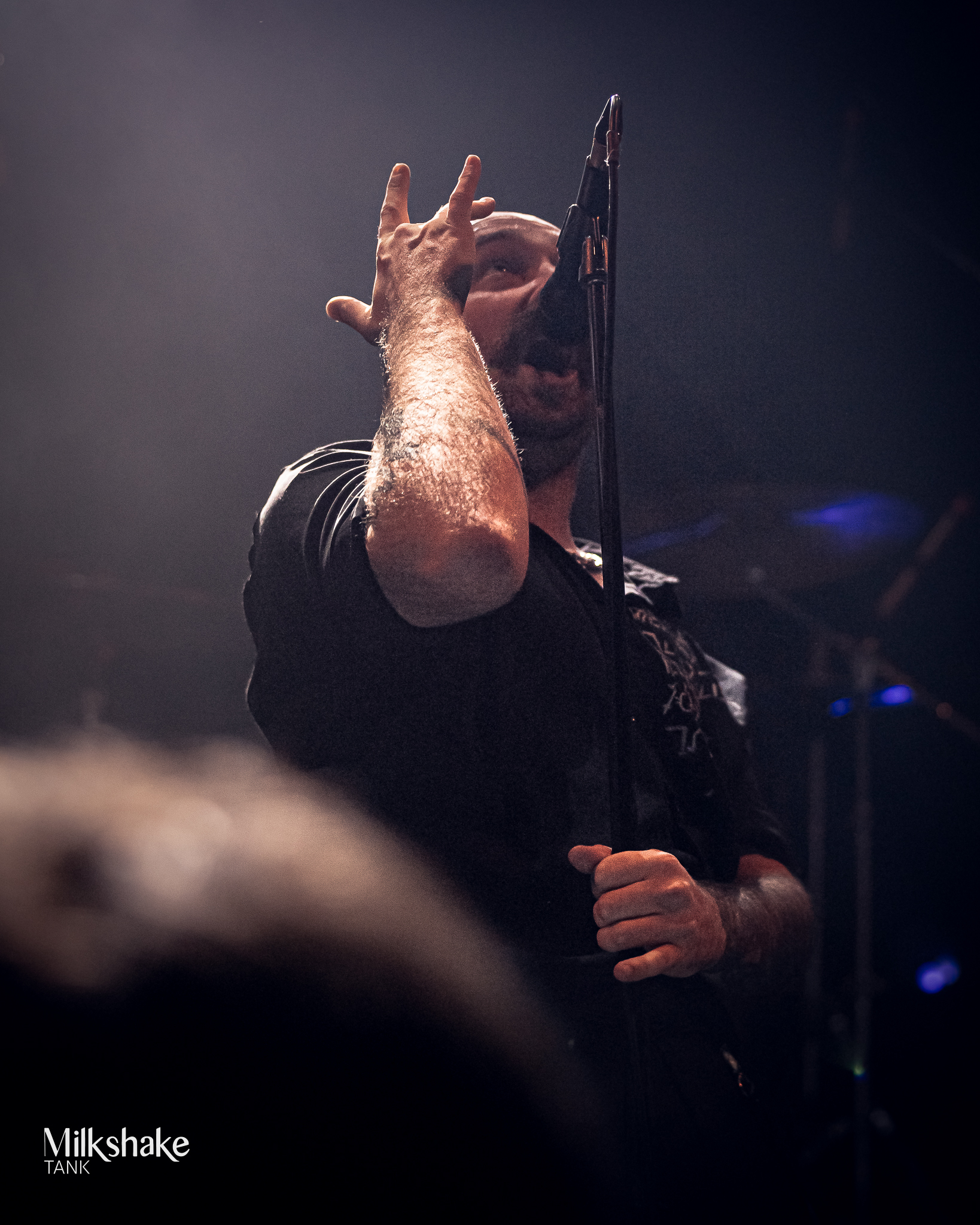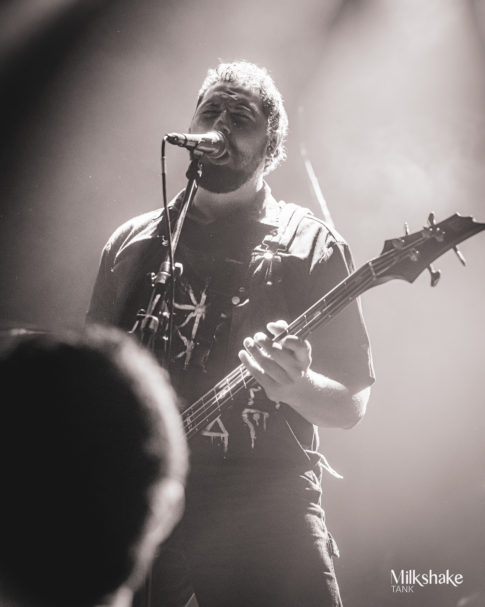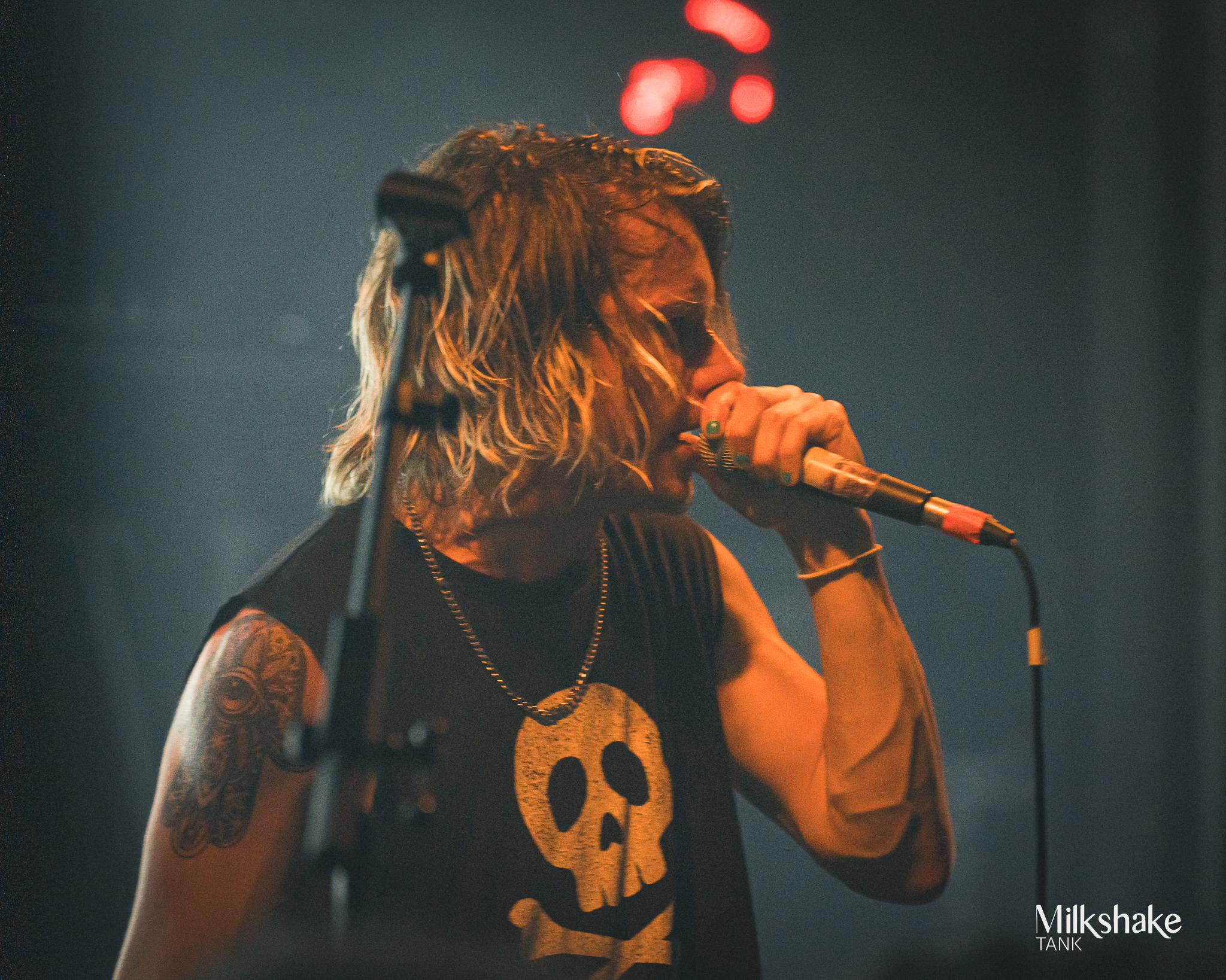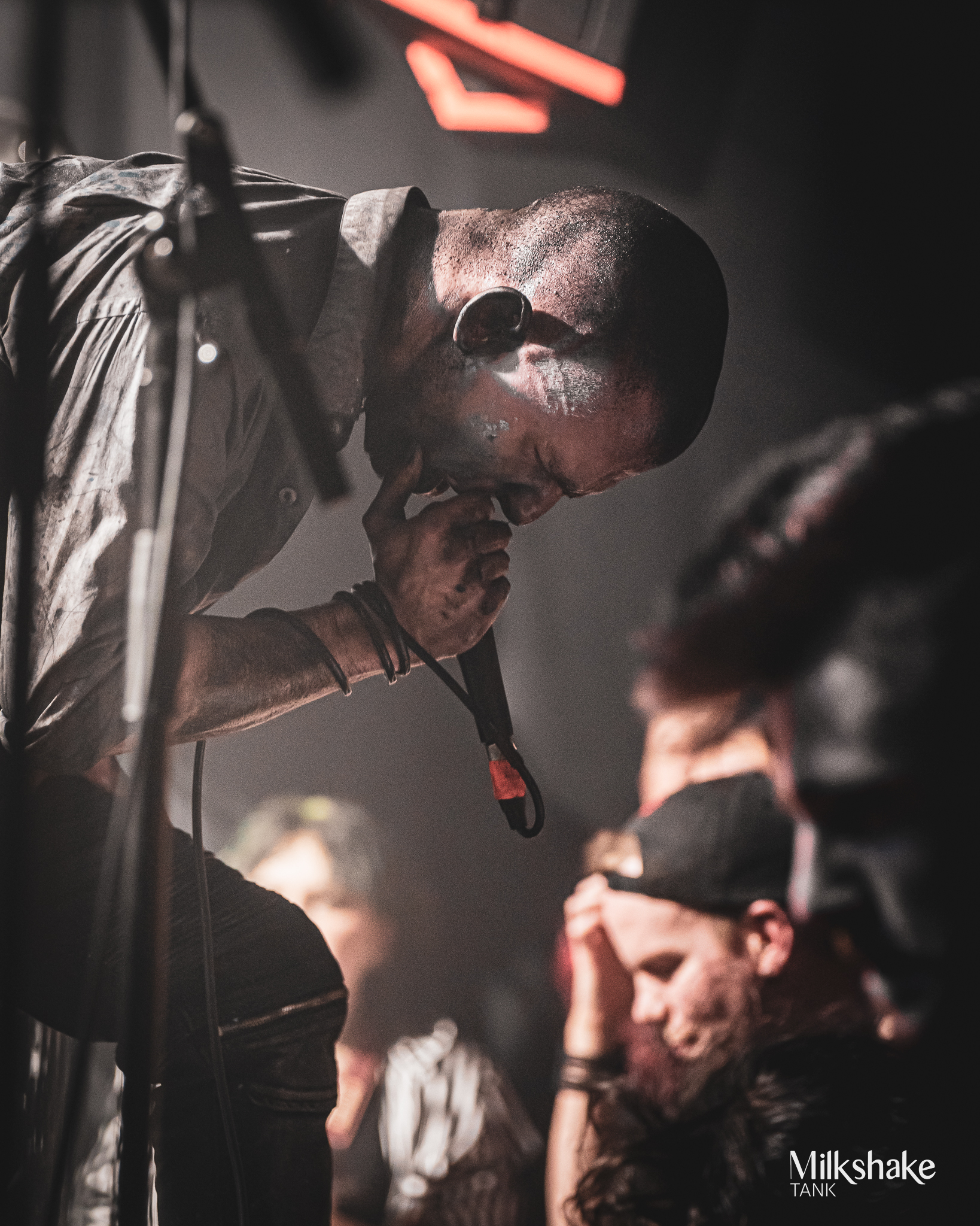 The Gloom in The Corner prend ensuite le relais, plongeant la salle dans une ambiance sombre et intense. Mikey nous fait l’honneur de s’exprimer en français pour présenter son groupe et nous dire à quel point ils sont contents d’être ici à Paris, il s’excuse pour son français qui n’est pourtant pas si mauvais. Ça commence gentiment …les 30 premières secondes et après on se prend un uppercut dans la gueule. Leur performance est captivante, chaque morceau racontant une histoire, transportant les spectateurs dans leur univers unique. Ce sont des grosses claques dans la gueule, constantes, à chaque fois que tu crois que tu vas avoir le temps de souffler deux secondes, ils en remettent une couche en fosse c’est la folie.