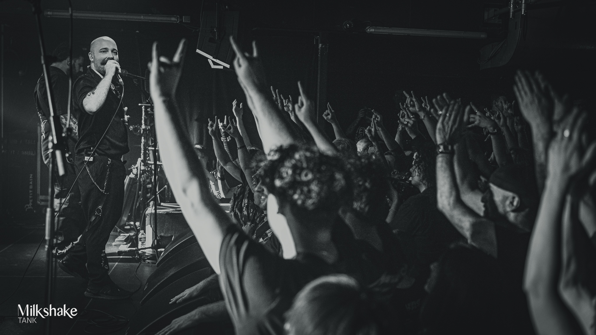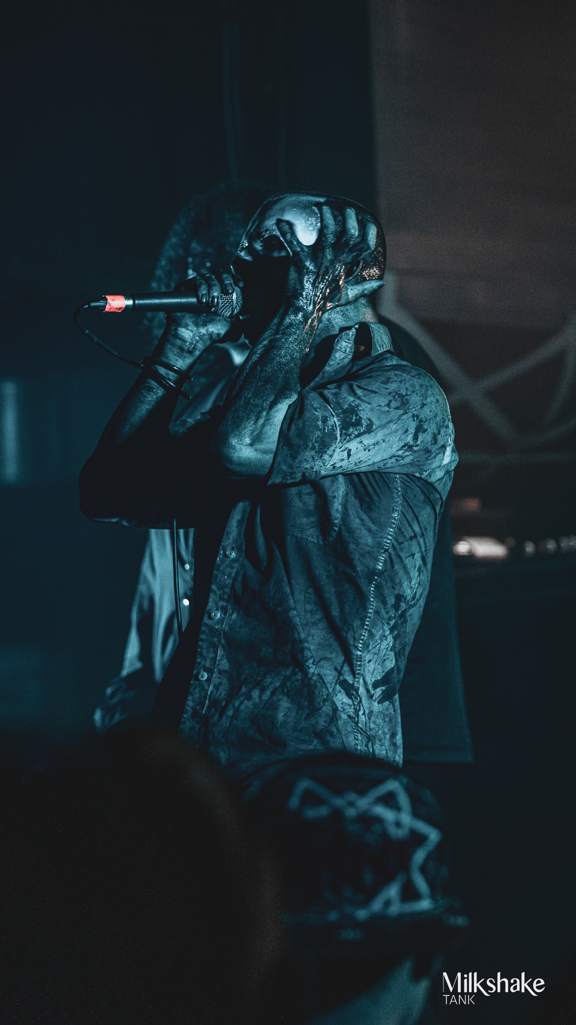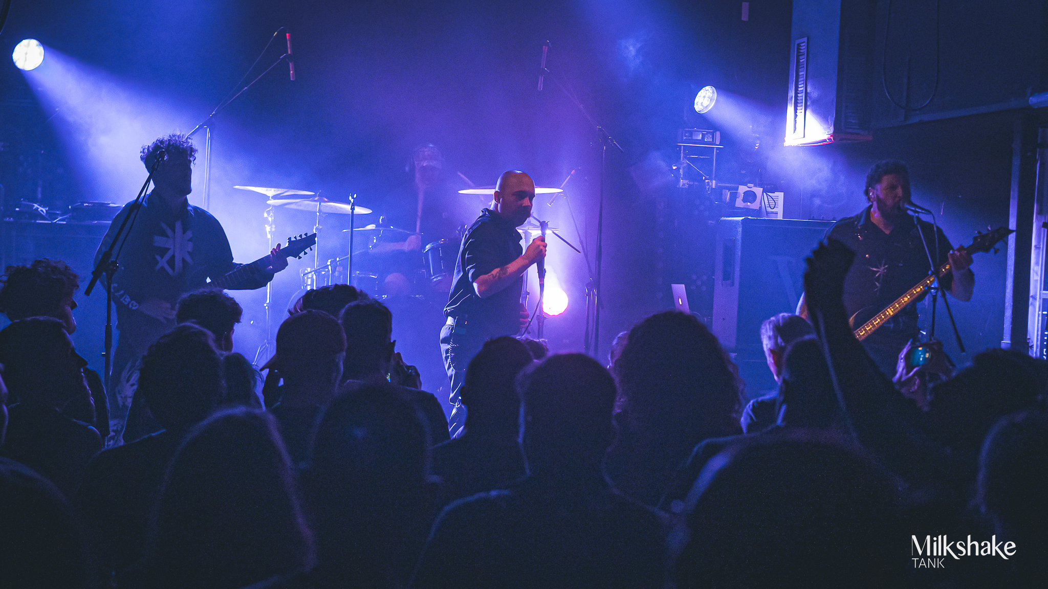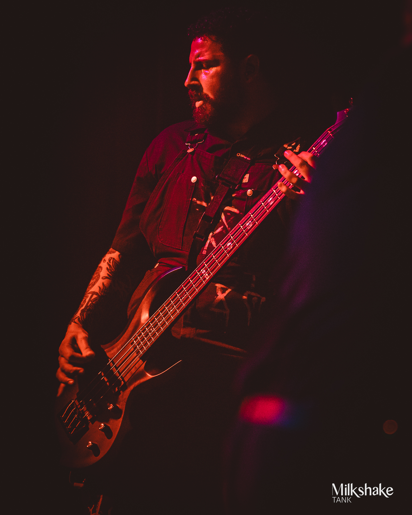 The Gloom in The Corner prend ensuite le relais, plongeant la salle dans une ambiance sombre et intense. Mikey nous fait l’honneur de s’exprimer en français pour présenter son groupe et nous dire à quel point ils sont contents d’être ici à Paris, il s’excuse pour son français qui n’est pourtant pas si mauvais. Ça commence gentiment …les 30 premières secondes et après on se prend un uppercut dans la gueule. Leur performance est captivante, chaque morceau racontant une histoire, transportant les spectateurs dans leur univers unique. Ce sont des grosses claques dans la gueule, constantes, à chaque fois que tu crois que tu vas avoir le temps de souffler deux secondes, ils en remettent une couche en fosse c’est la folie.