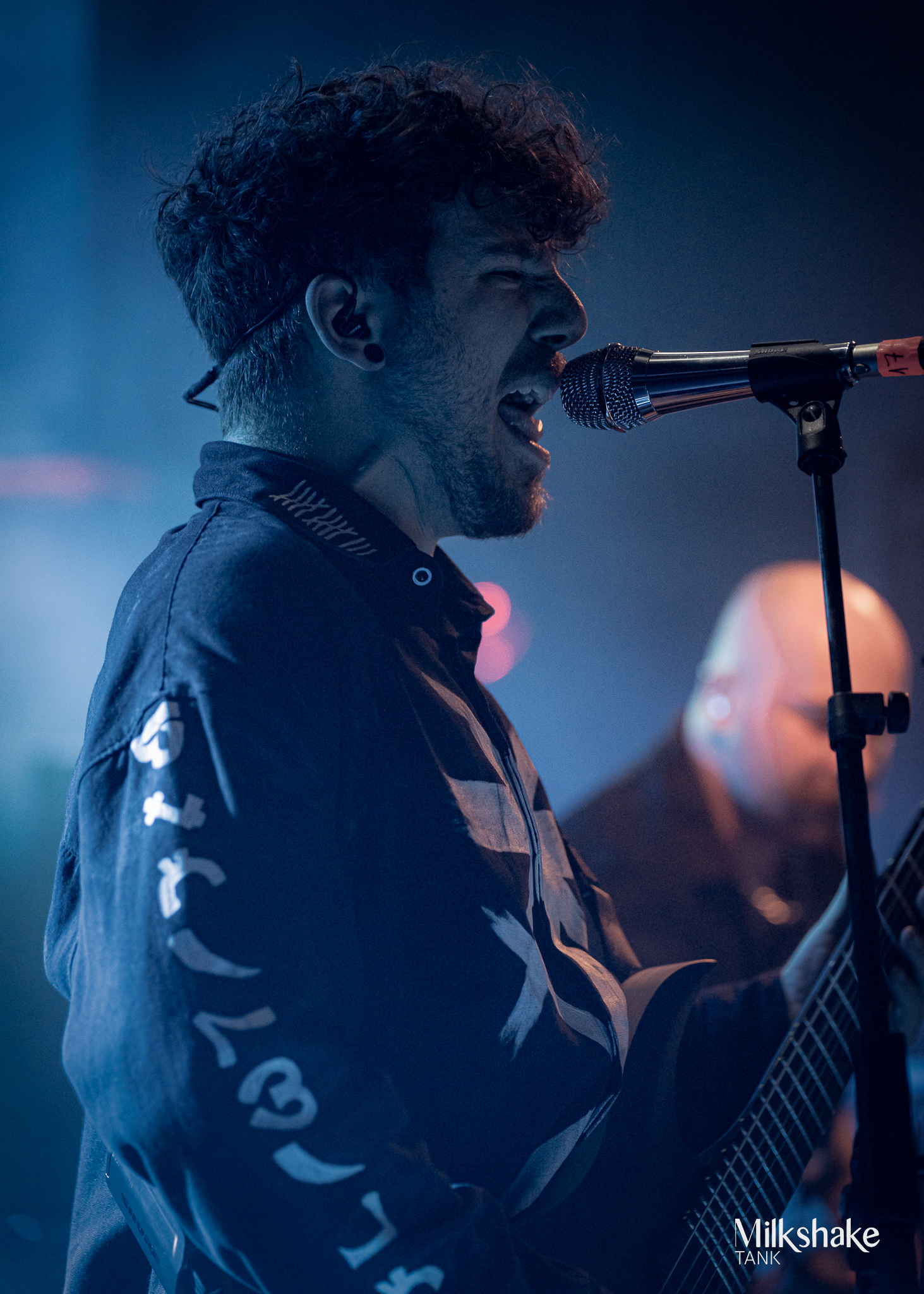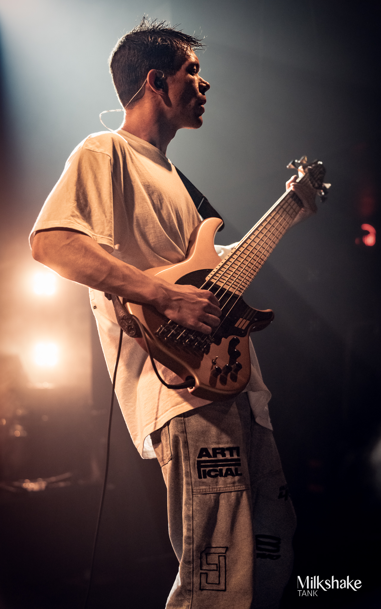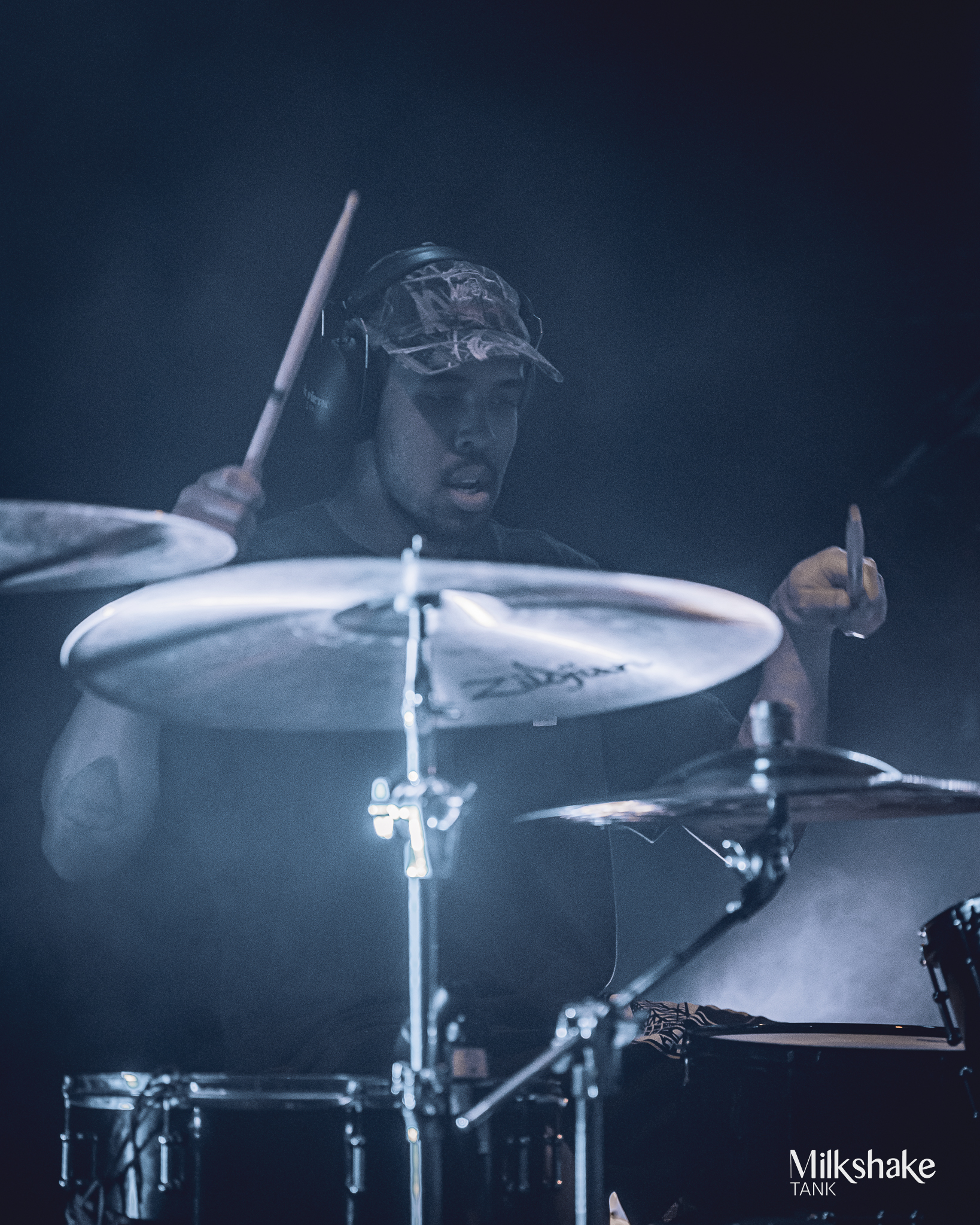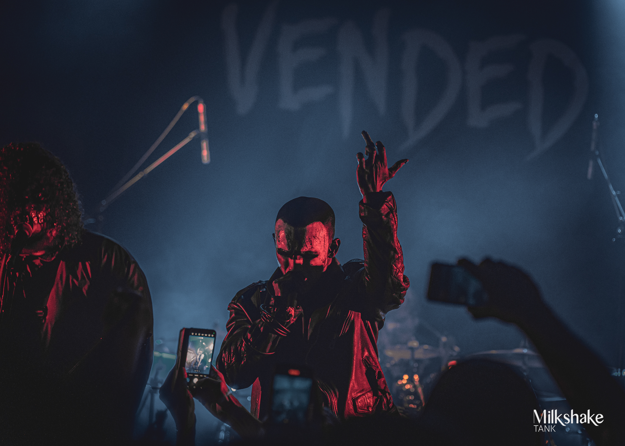 La salle du Petit Bain est maintenant pleine à craquer, l’excitation des fans est palpable. Les lumières s’éteignent, plongeant la salle dans l’obscurité avant que les premiers accords de Profiler ne retentissent. Le groupe ouvre la soirée avec le titre Hello yes it’s, qui met tout le monde d’accord. Ces jeunes hommes au nombre de trois, originaires de Bristol, proposent un Nu Metal rafraîchissant de grande qualité! Ils enchaînent avec des titres comme “Identify“, “Operator” et “Animo “et démontrent une énergie débordante, chaque note électrise le public. La voix Mike et de qualité et Oscar à la batterie , l’impression par sa grande maîtrise, ils semblent tous très jeune et désinvolte au premier abord, mais nul doute que ce sont des bosseurs au vu de la qualité musicale qu’ils nous proposent! Ils sont très communiquant avec le public qui est très réceptif à leur proposition. Leur set se conclu sur l’excellent titre: « Zero ». Pour moi qui ne connaissait pas ce groupe, c’est véritablement une très belle découverte. D’ailleurs Simon (batteur de Vended) est resté tout le long sur le côté de scène pour bouger en rythme!