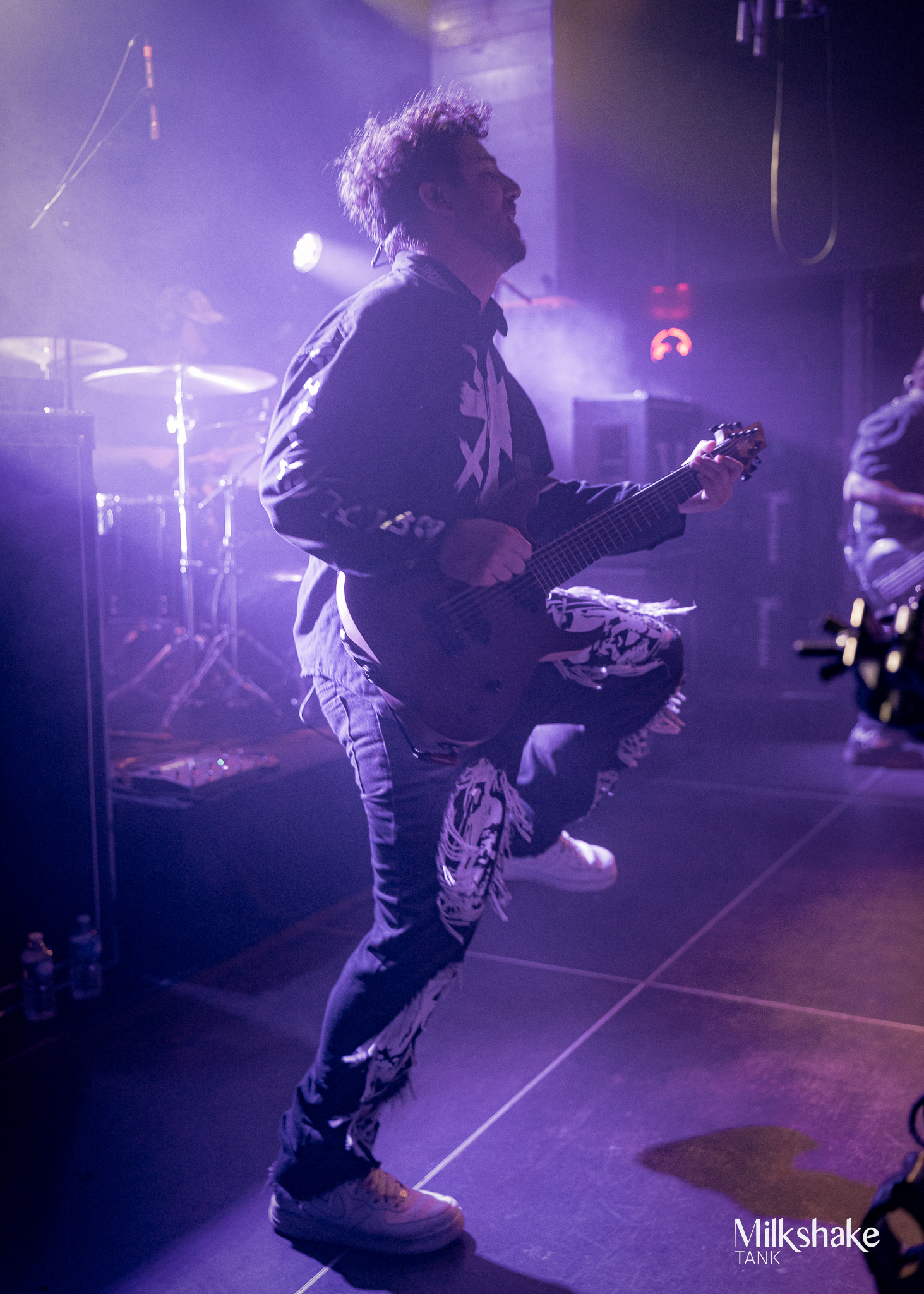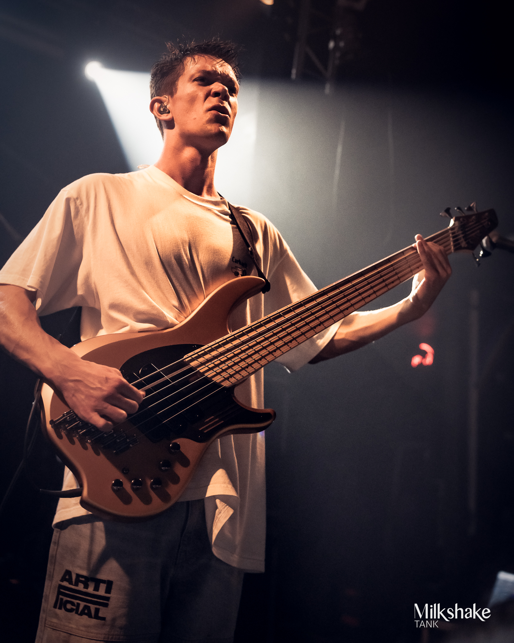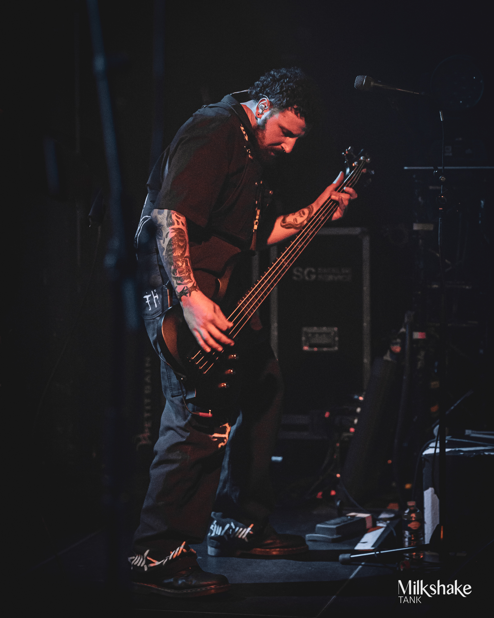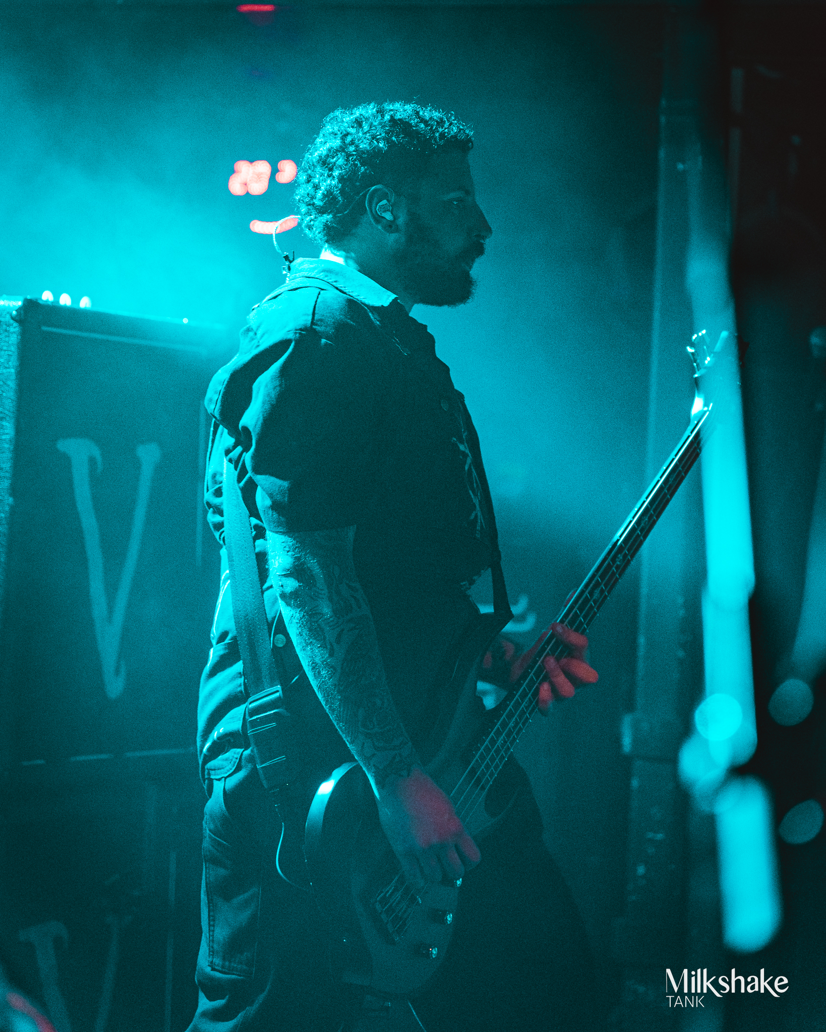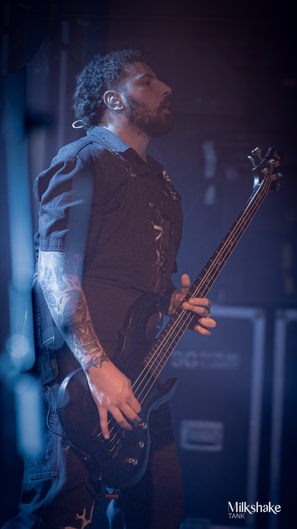 La salle du Petit Bain est maintenant pleine à craquer, l’excitation des fans est palpable. Les lumières s’éteignent, plongeant la salle dans l’obscurité avant que les premiers accords de Profiler ne retentissent. Le groupe ouvre la soirée avec le titre Hello yes it’s, qui met tout le monde d’accord. Ces jeunes hommes au nombre de trois, originaires de Bristol, proposent un Nu Metal rafraîchissant de grande qualité! Ils enchaînent avec des titres comme “Identify“, “Operator” et “Animo “et démontrent une énergie débordante, chaque note électrise le public. La voix Mike et de qualité et Oscar à la batterie , l’impression par sa grande maîtrise, ils semblent tous très jeune et désinvolte au premier abord, mais nul doute que ce sont des bosseurs au vu de la qualité musicale qu’ils nous proposent! Ils sont très communiquant avec le public qui est très réceptif à leur proposition. Leur set se conclu sur l’excellent titre: « Zero ». Pour moi qui ne connaissait pas ce groupe, c’est véritablement une très belle découverte. D’ailleurs Simon (batteur de Vended) est resté tout le long sur le côté de scène pour bouger en rythme!