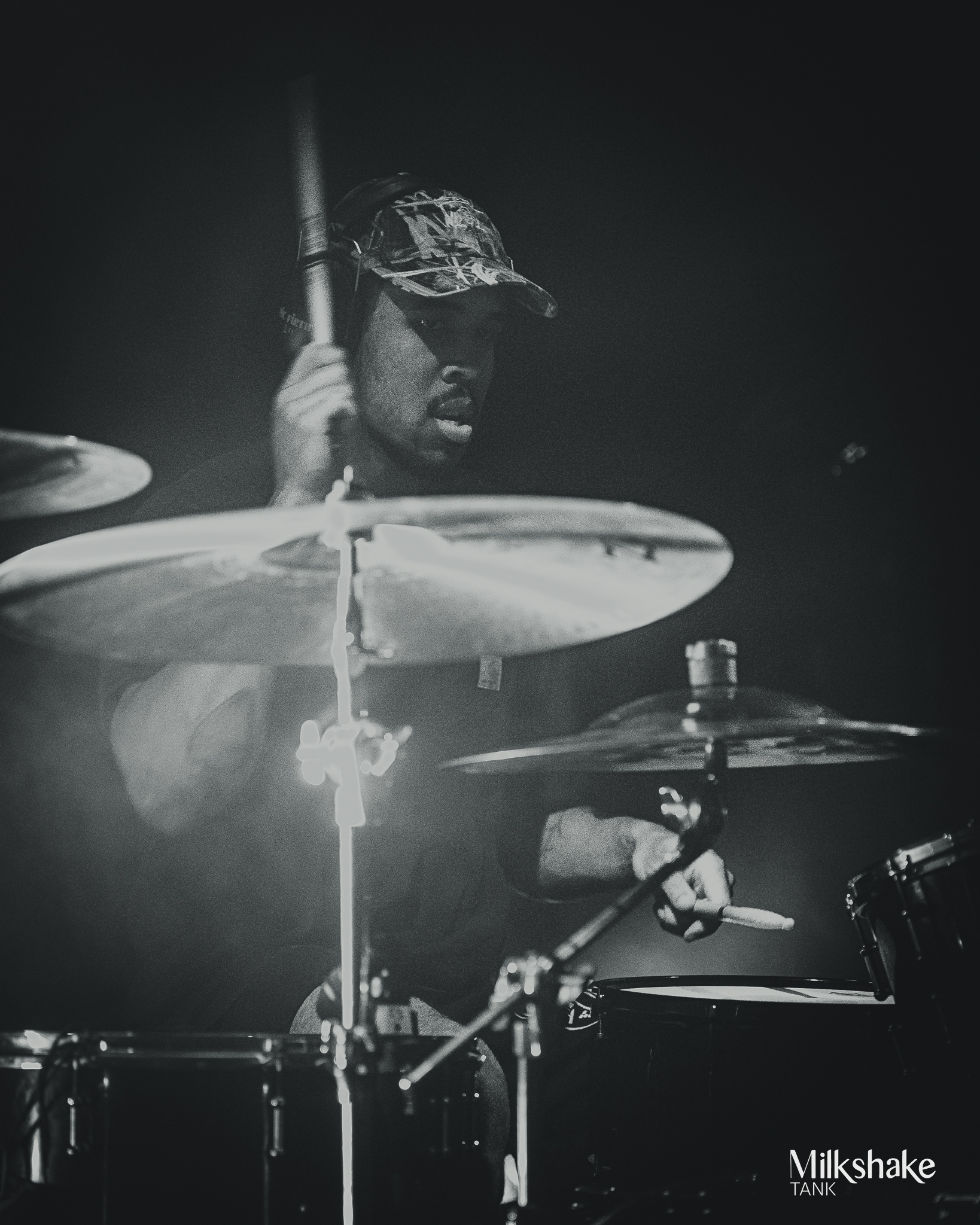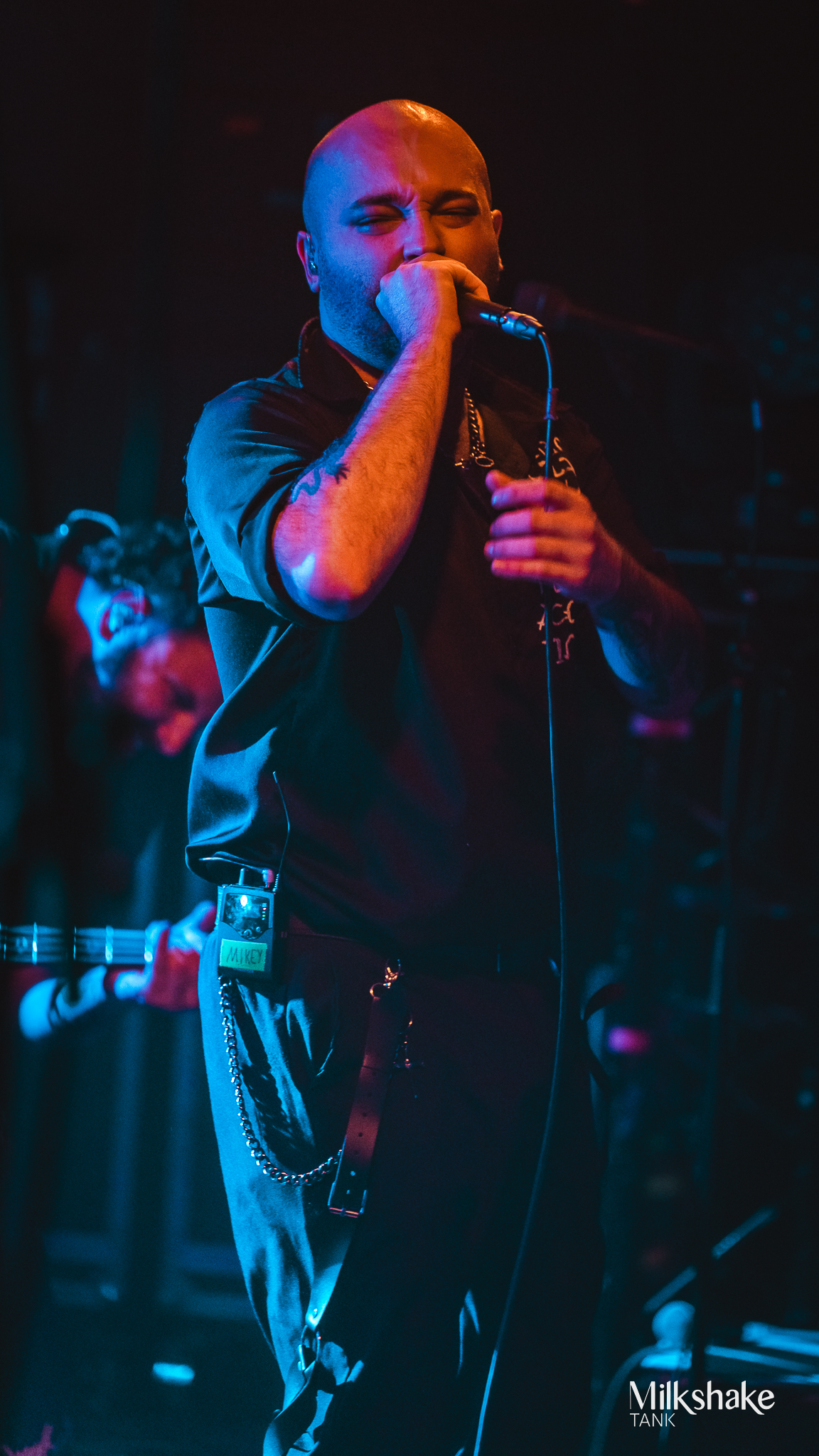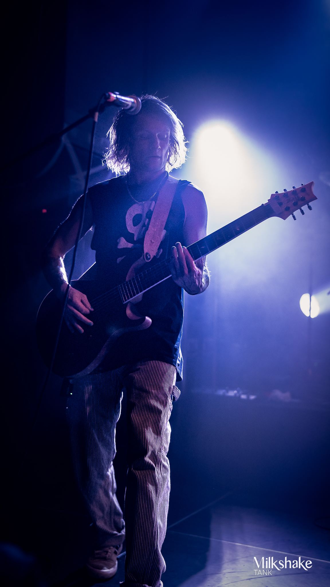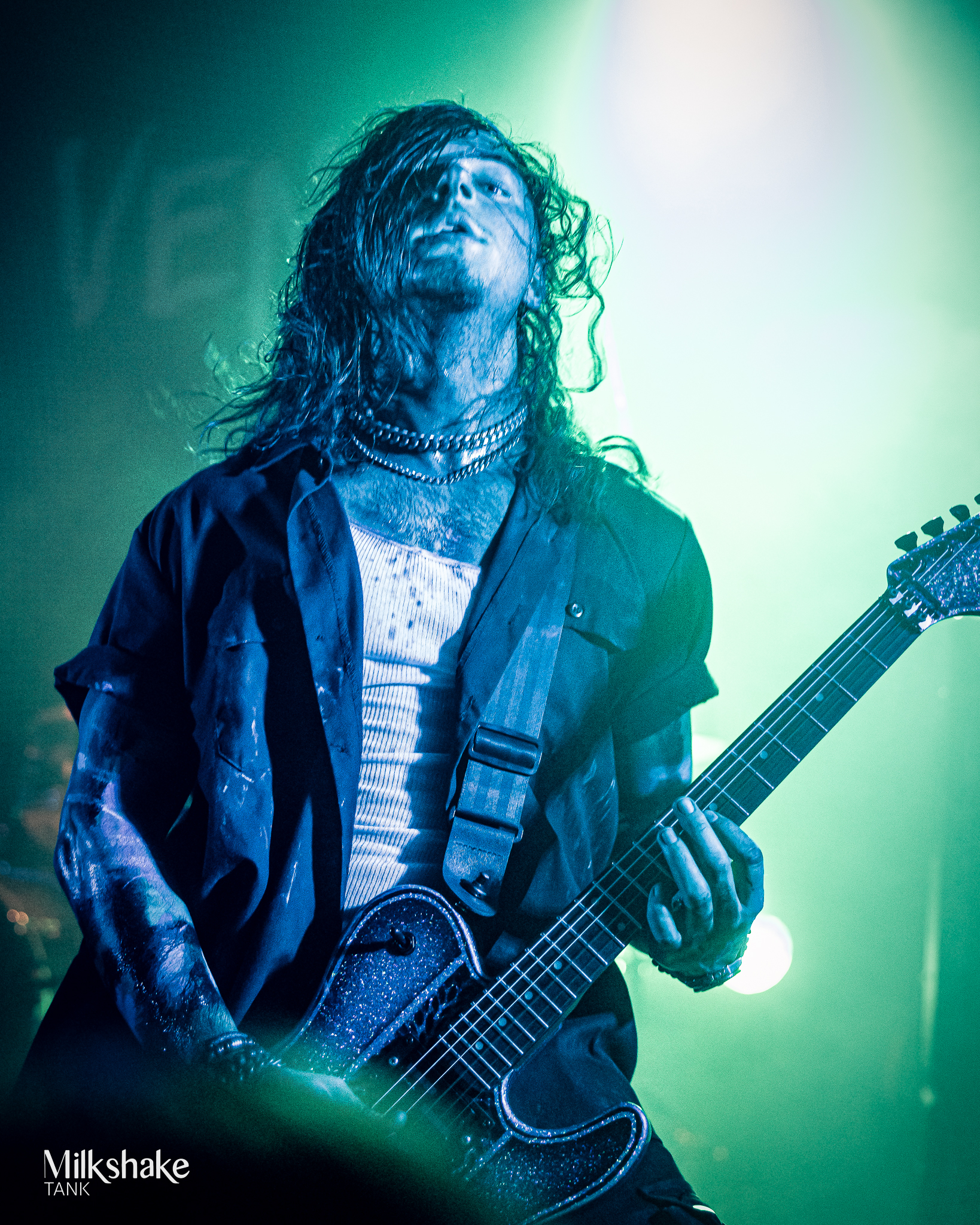 La salle du Petit Bain est maintenant pleine à craquer, l’excitation des fans est palpable. Les lumières s’éteignent, plongeant la salle dans l’obscurité avant que les premiers accords de Profiler ne retentissent. Le groupe ouvre la soirée avec le titre Hello yes it’s, qui met tout le monde d’accord. Ces jeunes hommes au nombre de trois, originaires de Bristol, proposent un Nu Metal rafraîchissant de grande qualité! Ils enchaînent avec des titres comme “Identify“, “Operator” et “Animo “et démontrent une énergie débordante, chaque note électrise le public. La voix Mike et de qualité et Oscar à la batterie , l’impression par sa grande maîtrise, ils semblent tous très jeune et désinvolte au premier abord, mais nul doute que ce sont des bosseurs au vu de la qualité musicale qu’ils nous proposent! Ils sont très communiquant avec le public qui est très réceptif à leur proposition. Leur set se conclu sur l’excellent titre: « Zero ». Pour moi qui ne connaissait pas ce groupe, c’est véritablement une très belle découverte. D’ailleurs Simon (batteur de Vended) est resté tout le long sur le côté de scène pour bouger en rythme!