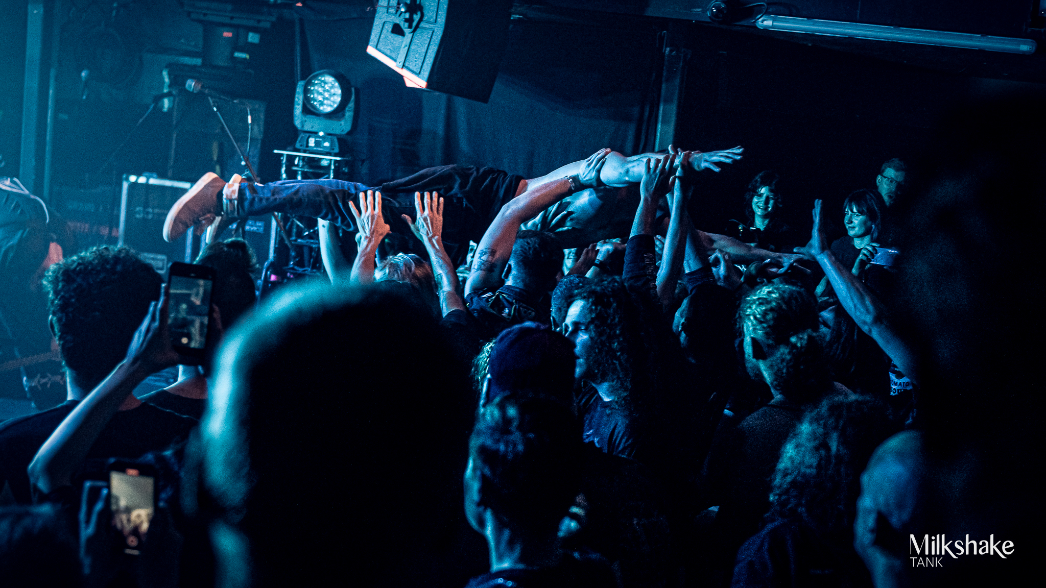 The Gloom in The Corner then take over, plunging the room into a dark and intense atmosphere. Mikey does us the honor of speaking in French to introduce his band and tell us how happy they are to be here in Paris, apologizing for his French, which isn’t so bad. It starts off nicely…for the first 30 seconds, and then you get an uppercut in the face. Their performance is captivating, each track telling a story, transporting the audience into their unique universe. It’s a constant slap in the face, and every time you think you’re going to get two seconds to breathe, they’re back in the pit with another layer of madness.