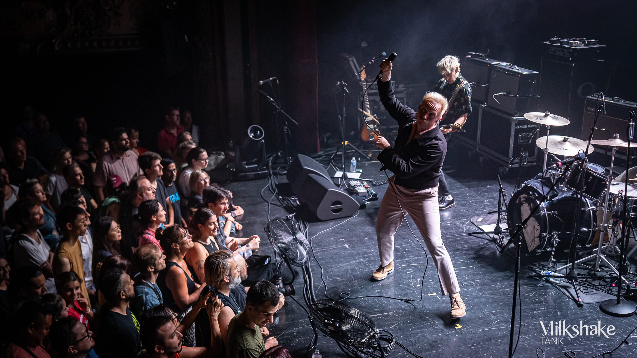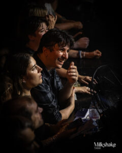 À 19h30, sous une pluie d’applaudissements, Hamish Hawk monte sur scène. Dès les premières notes de « Elvis Look-alike Shadows», le public est captivé par l’énergie théâtrale de leur chanteur. Son accent écossais, sa gestuelle exagérée et son charisme immédiat créent une atmosphère unique. Le public parisien réagit avec enthousiasme, particulièrement lorsque le chanteur leur tend le micro pour chanter en chœur.