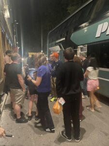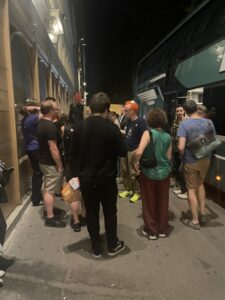 À minuit, ils rejoignent leur tour bus, où une foule de fans les attend patiemment pour échanger quelques mots, obtenir des autographes, et prendre des photos. Fran Healy et Andy Dunlop, toujours aussi disponibles et chaleureux, prennent le temps de discuter avec chaque personne, avec un sourire sincère. Malgré la fatigue, ils restent avec leurs fans jusqu’à 00h30, appréciant visiblement ces moments de partage et de gratitude. Pour eux, ces interactions font partie intégrante de la magie d’une tournée, où le lien avec le public ne s’arrête pas une fois les projecteurs éteints.