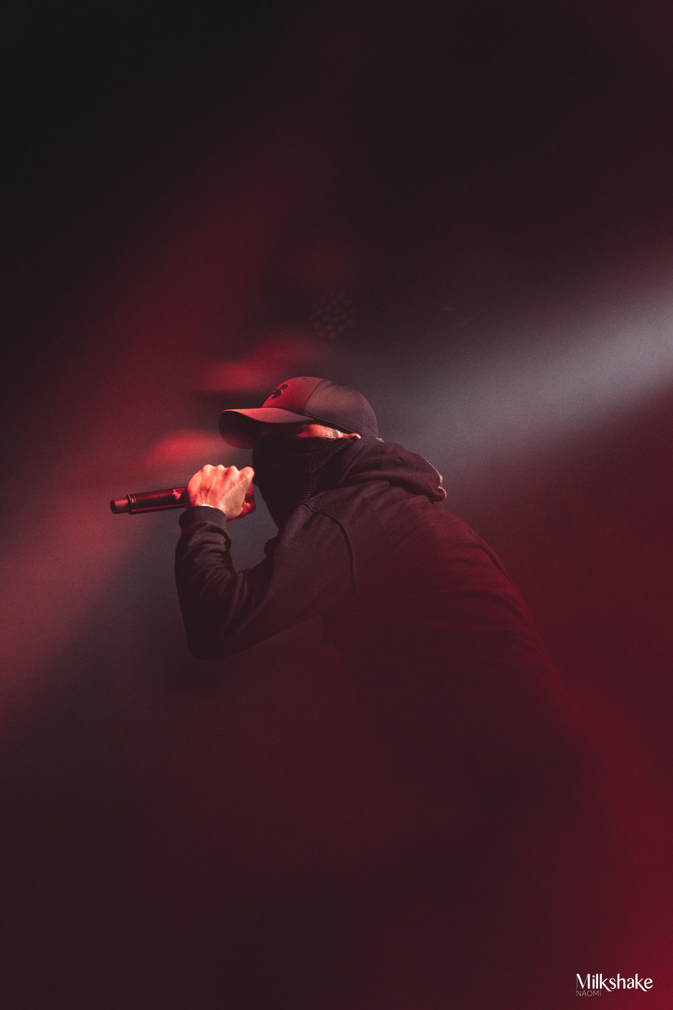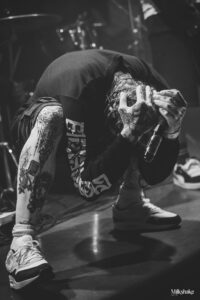 Right from the start, they throw the title track “The Rising” in our faces, and that’s enough to give us a big slap in the face. I wonder how John manages to catch his breath between beastly screams with his mouth masked. And I understand that it can’t be easy, because by the second track, they finish with their faces uncovered, which takes nothing away from these guys’ charisma! It doesn’t take long for the crowd to get into a moshpit as big as the hall. On the track “My Fate“, we reach the apotheosis of brutality. Everyone is on fire, both on stage and in the pit.
