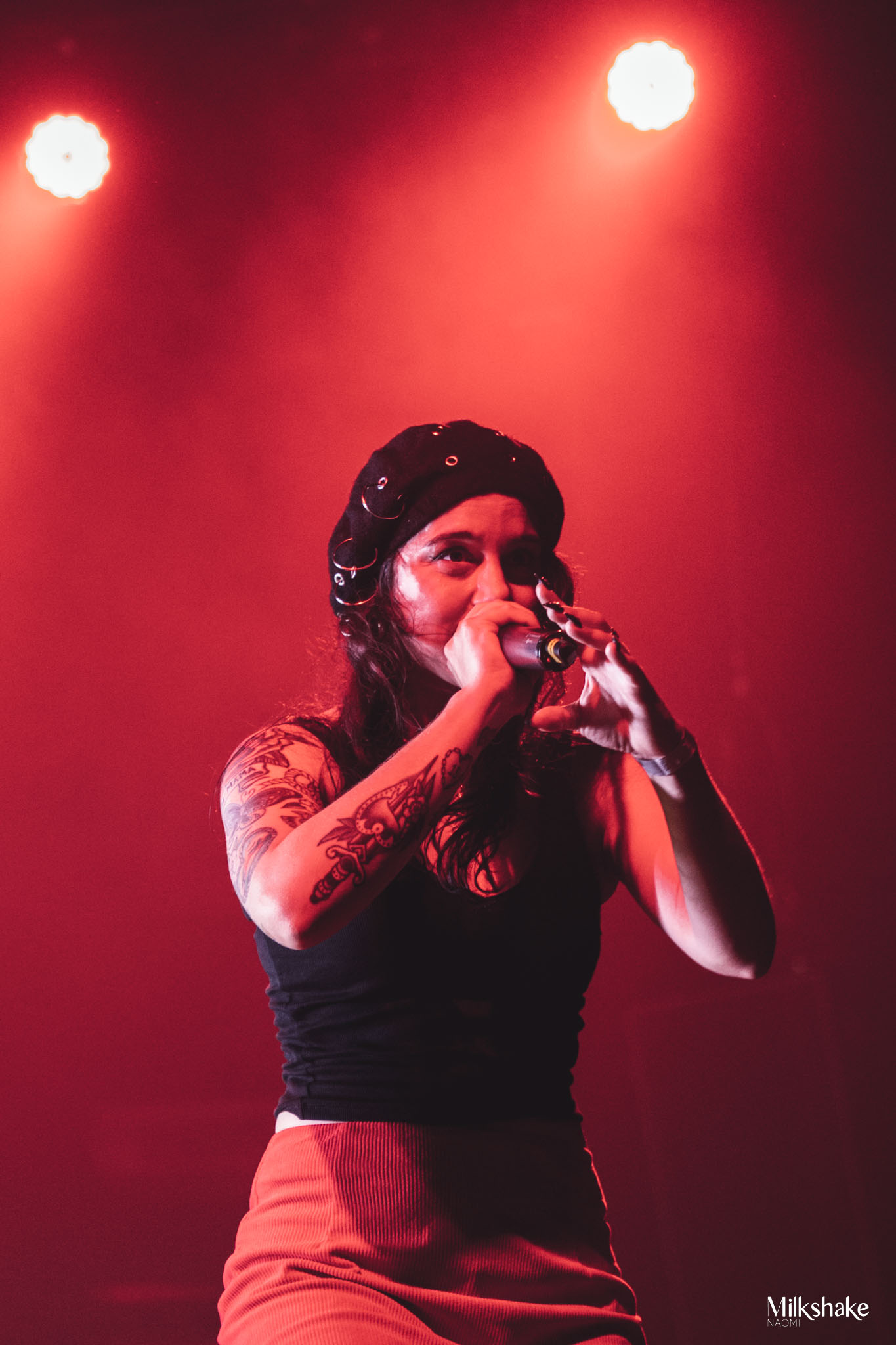 Le set débute avec « Prisoner » qui est devenu un incontournable du groupe et le public est d’office réceptif. Les titres s’enchaînent et la fosse bouge dans tous les sens, quand Camille annonce un moment calme.
