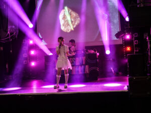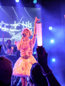 Dès “Tinker Bell”, l’énergie est totale. La chanteuse s’adresse au public, s’essayant au français avec un accent adorable. Vient le moment du DJ… et là, tout le travail d’apprentissage de l’après-midi prend vie. Il lance ses deux phrases en français, avec application et un énorme sourire. La salle hurle, applaudit, encourage. Un petit pont entre deux cultures vient d’être construit, et tout le monde s’y engouffre.