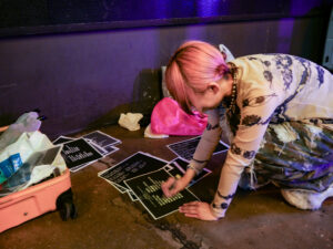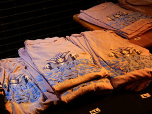 Les VIP entrent les premiers et reçoivent un sac de goodies : poster dédicacé, cup, tote bag et laminet souvenir. Les yeux brillent, les portefeuilles s’ouvrent : le merch est déjà pris d’assaut.