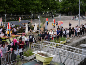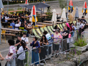 Le DJ Martin (bassiste de Paerish) commence son soundcheck. Pendant ce temps, dehors, la file s’étire et longe presque tout le quai. Les passants s’arrêtent, intrigués par cette foule déjà survoltée.