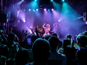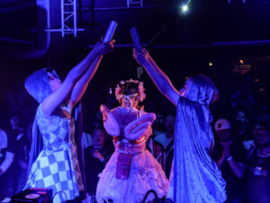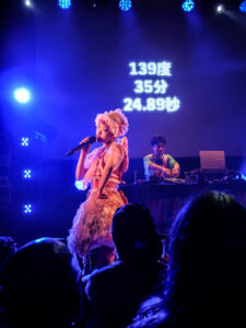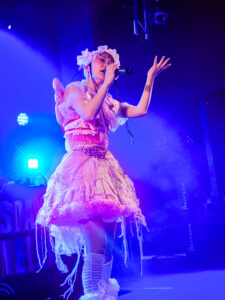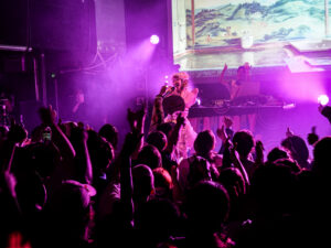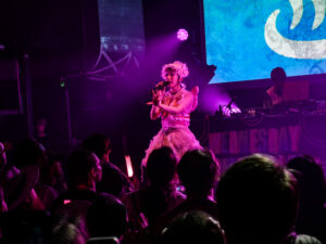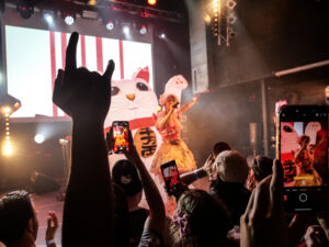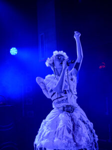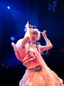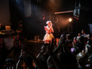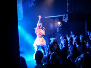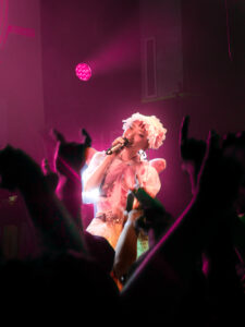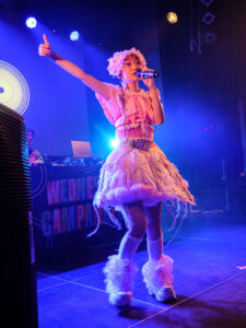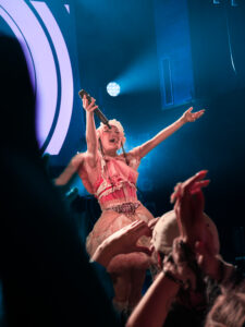 At 8:50, Wednesday Campanella’s DJ steps onto the stage to a wave of cheers… but the real entrance is still to come. The singer suddenly emerges from the back of the room, weaving her way through the crowd. Total chaos, the floor erupts in screams and jumping fans.
