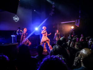 During Little Red Riding Hood, the dancers storm the stage, sending the crowd into a frenzy. Then, for Akateko, a pajama-clad wolf with a Paris-themed blanket, crafted during soundcheck, joins the performance. A surprise tribute, synchronized moves, the audience eats it up.