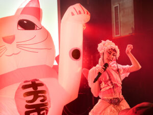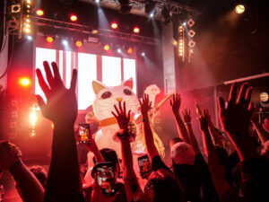 The show closes with Maneki Neko. A giant inflatable cat rises up on stage.