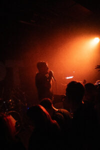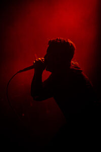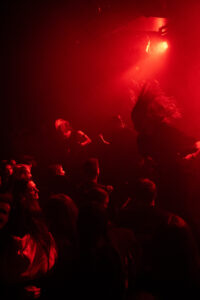 The night kicks off with Intohimo, a Swedish band formed in 2004, split in 2013, and recently back from the dead. They sit somewhere between screamo and post-hardcore, with a heavy emotional punch. Sharp guitars, shredded screams. It’s a harsh opener but perfectly dialed in to wake the place up. Their set is short but intense, total catharsis, like a jolt straight to the system.