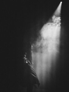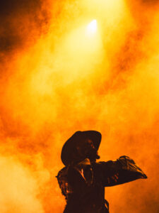 The lighting, blending with the stage smoke, creates a hypnotic atmosphere. At times, only Peggy’s silhouette is visible, making for some striking visuals.