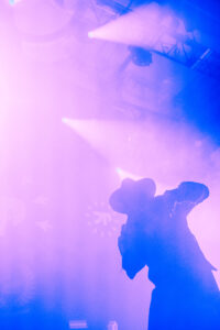 Les lights, mélangés à la fumée, créent une atmosphère envoûtante. Parfois, seule l’ombre du frontman se dessine sur scène, offrant un superbe visuel à l’assemblée.