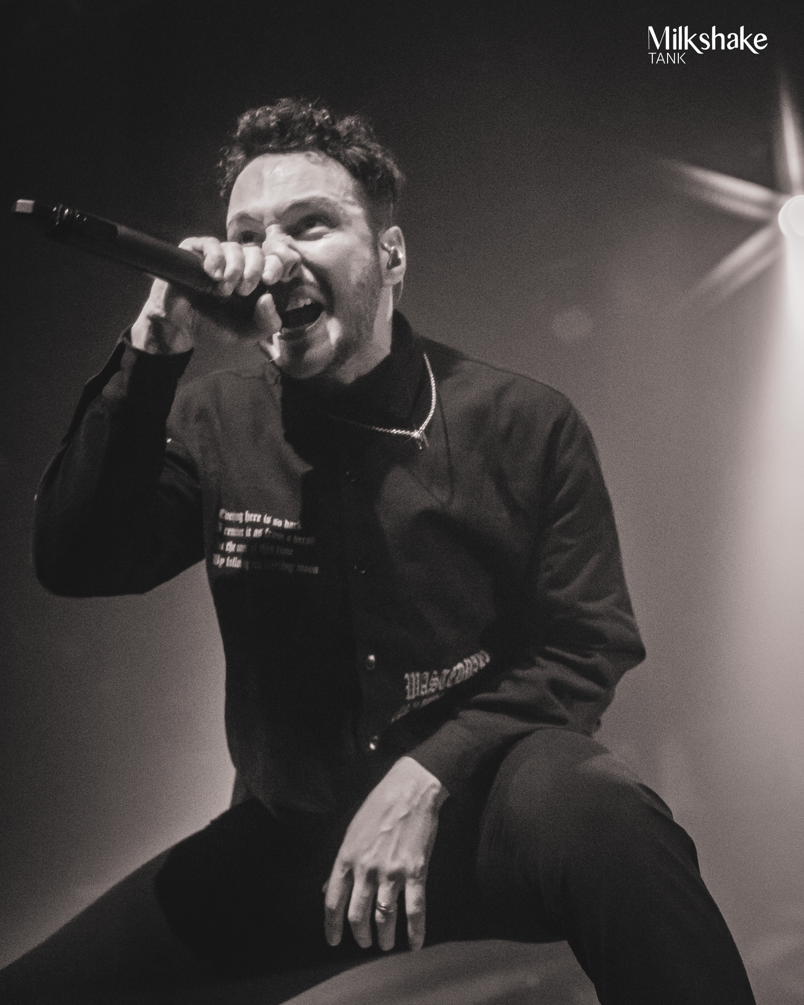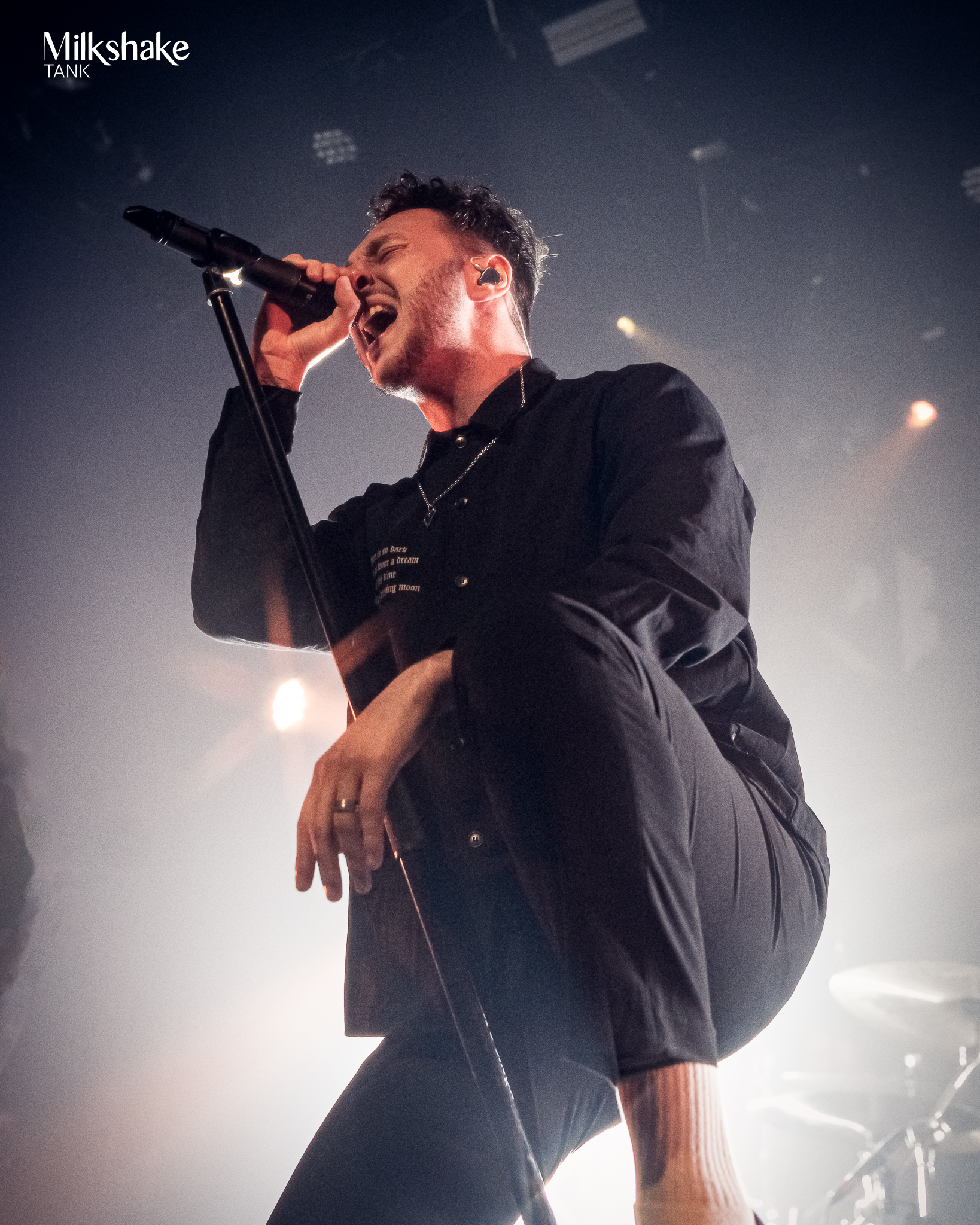 Les lumières s’éteignent et Resolve entre sur scène avec détermination. Anthony Diliberto (chant), Antonin Carré (guitare), Robin Mariat (basse) et Nathan Mariat (batterie) saluent la foule, le bras levé. Le set commence avec ‘Human‘ , réveillant instantanément la fosse qui se met à headbanger frénétiquement. Le ton est donné. Le chanteur, Anthony, exprime l’honneur qu’ils ressentent de jouer en première partie d’Underoath, un groupe qu’ils écoutent depuis qu’ils sont gamins. “Je suppose que vous aussi”, lance-t-il à la foule, qui répond avec des hurlements d’approbation.