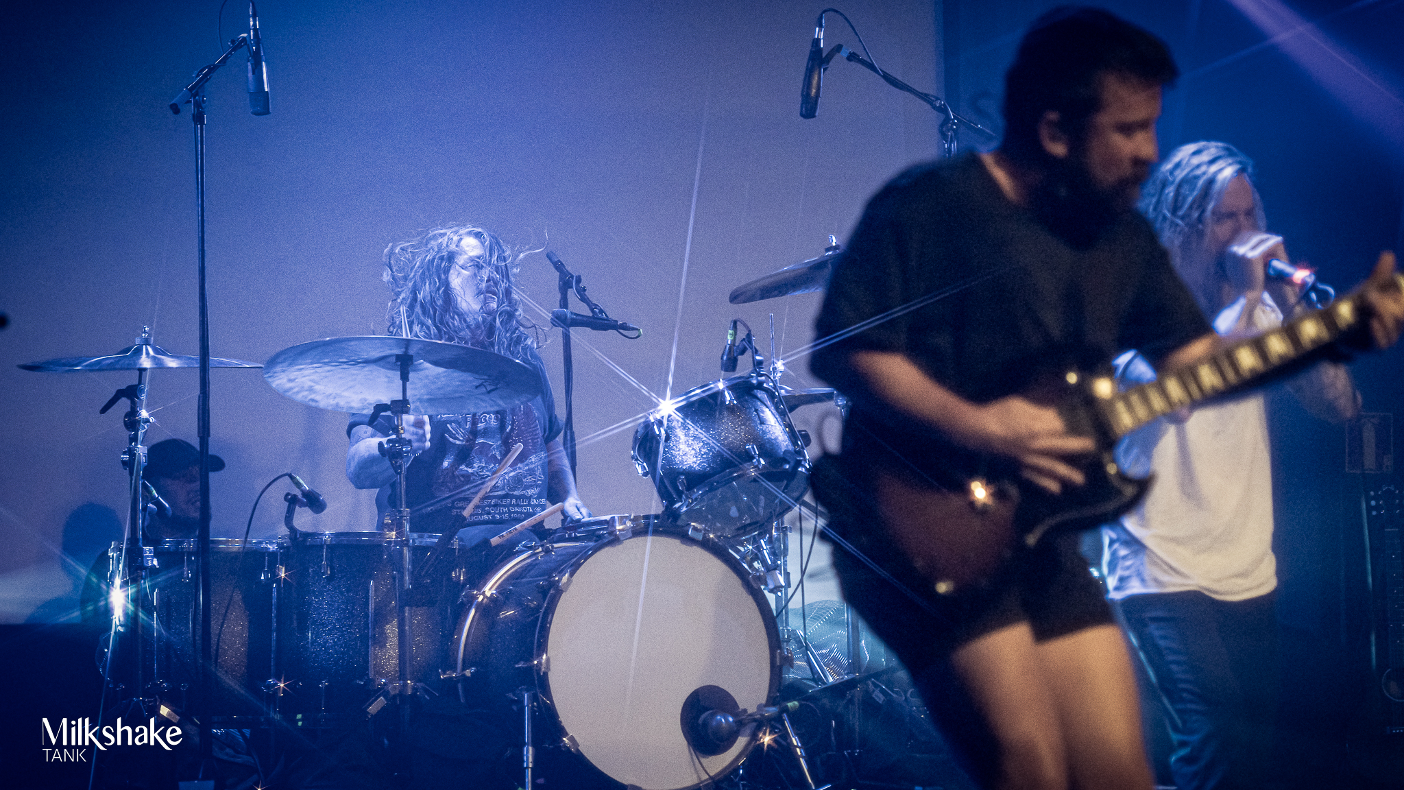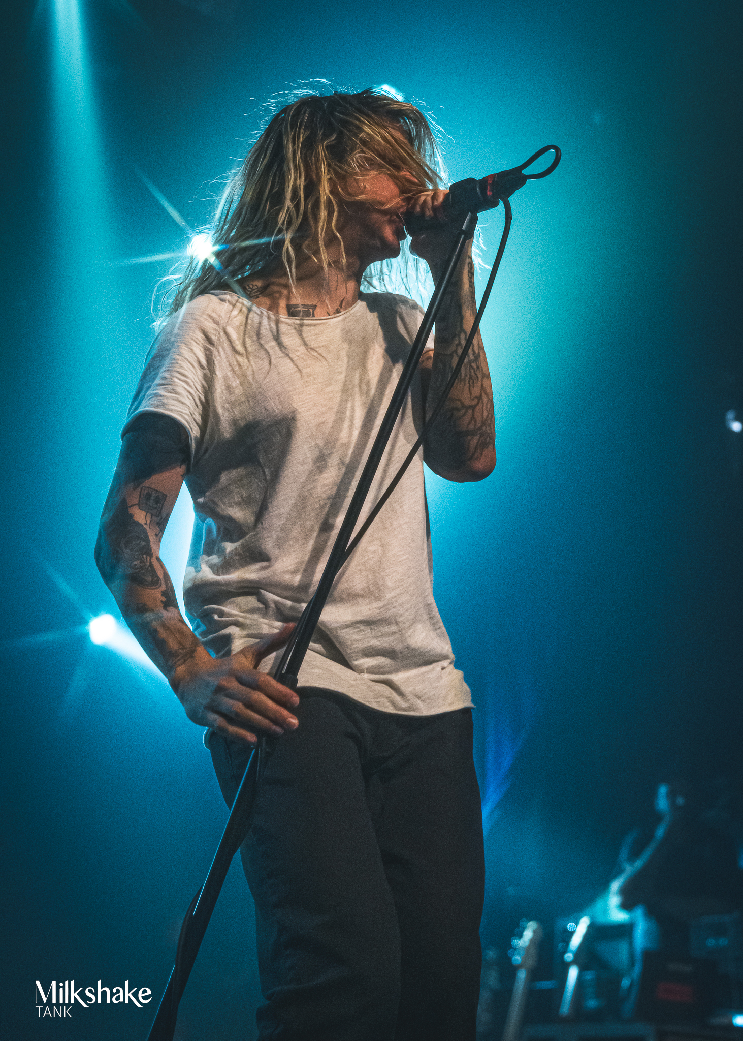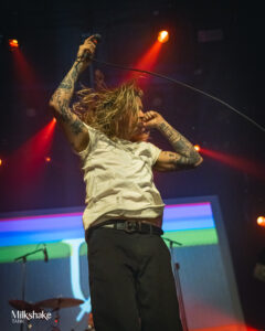 On ‘The Blue Note ‘- Spencer hands the microphone to the audience, who shout out the lyrics. Intense moshpit and vocal communion with Aaron, who laughs at the audience’s enthusiasm.