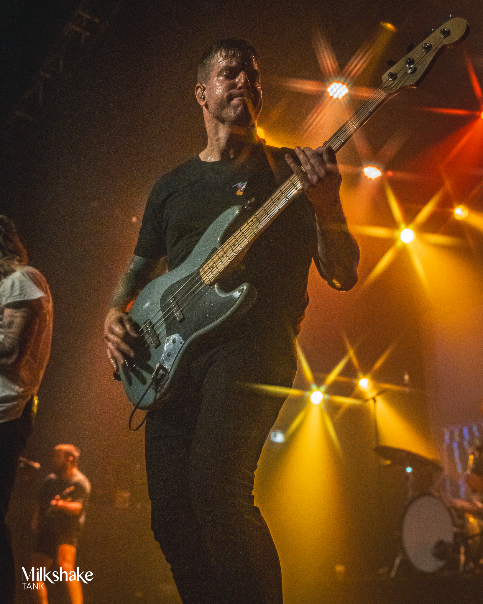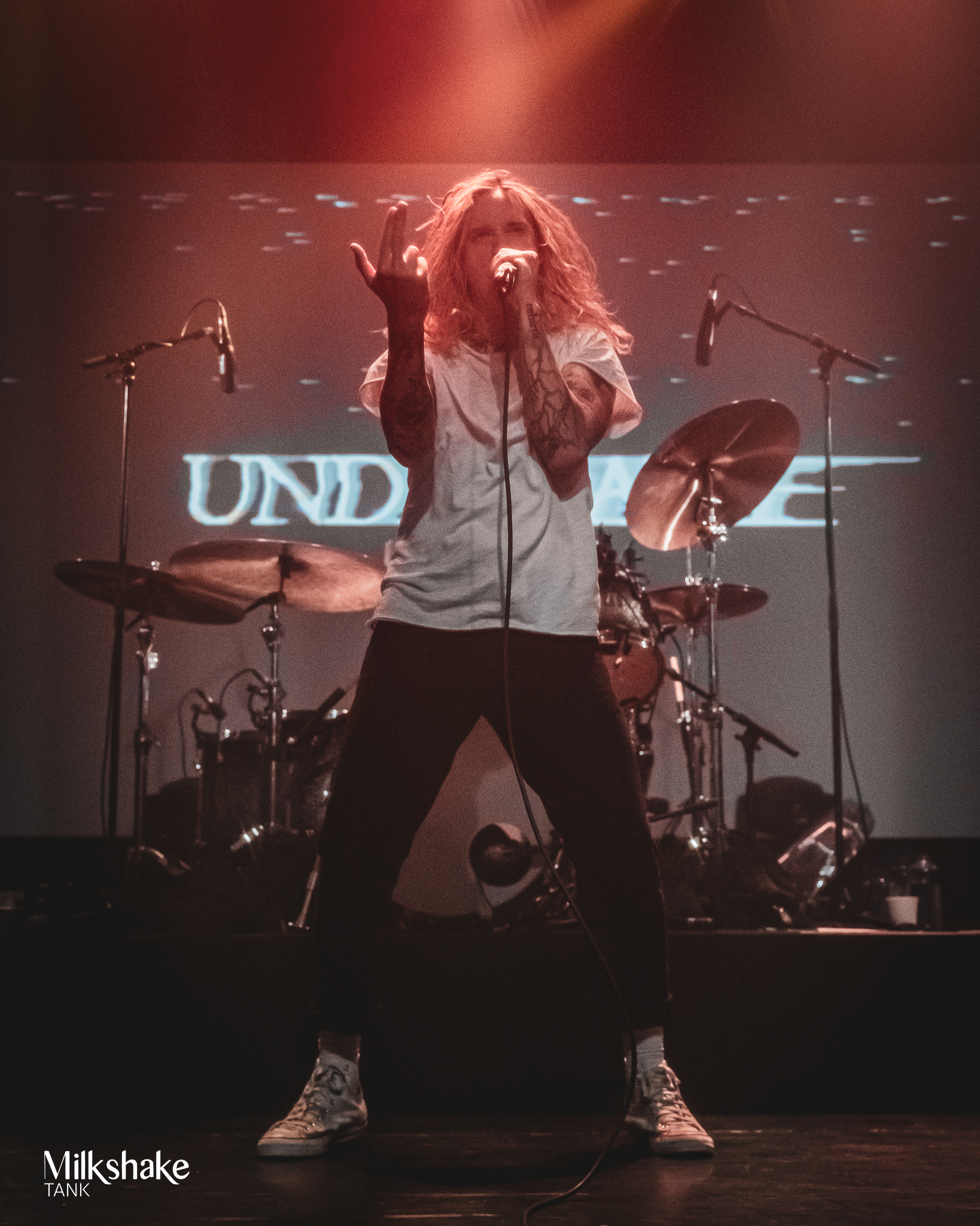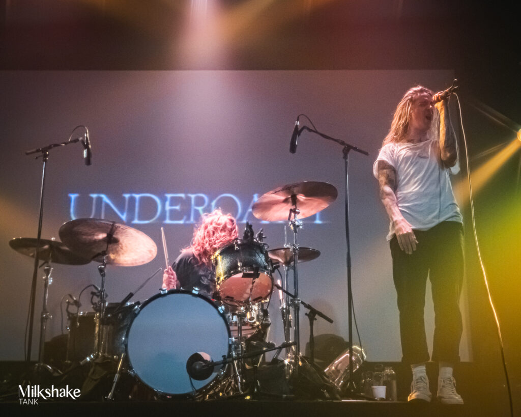 Les lumières s’éteignent à nouveau, et des tonnerres d’applaudissements accueillent Underoath. Le public, déjà déchaîné, hurle les paroles de ‘Young and Aspiring‘ . Spencer, au chant, galvanise la foule avec un “Make some fuckin noise!” tandis qu’Aaron, à la batterie et au chant, montre tout son talent.