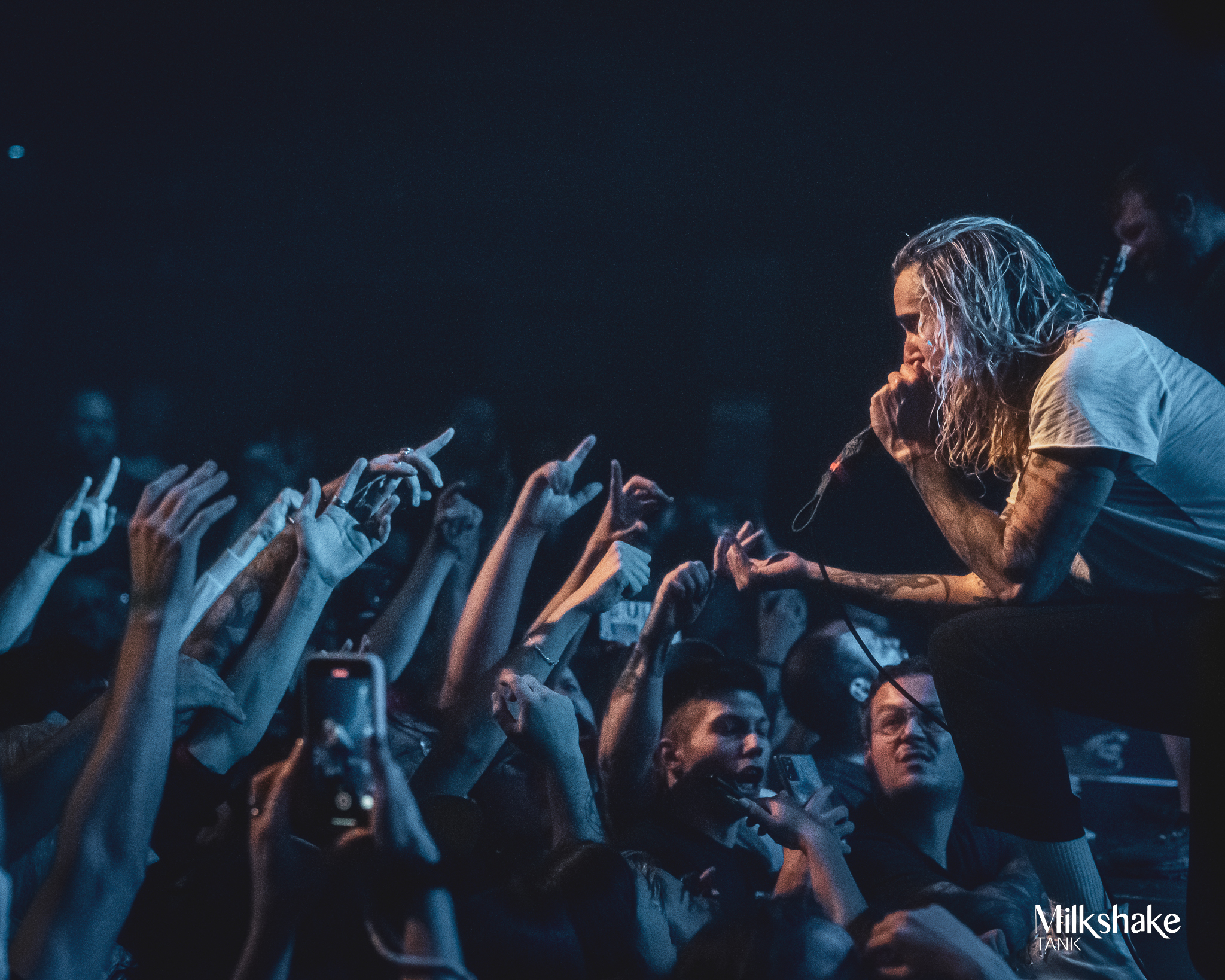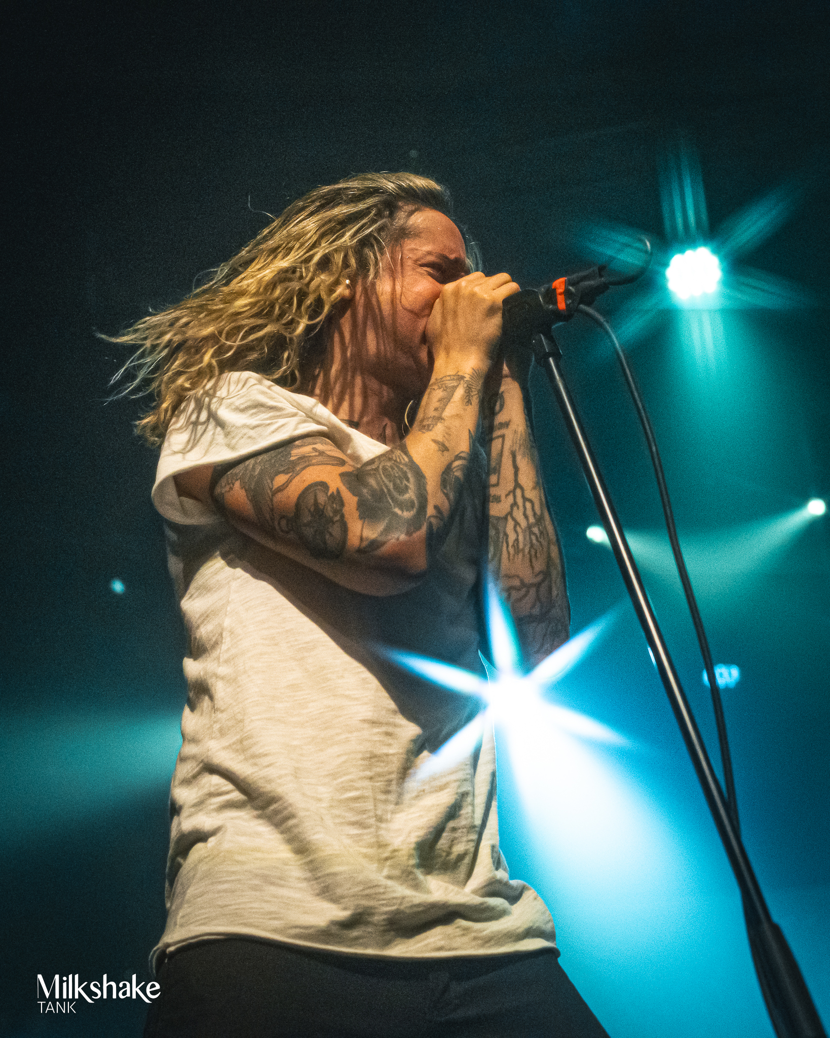 Sur ‘The Blue Note ‘- Spencer tend le micro au public qui hurle les paroles. Moshpit intense et communion vocale avec Aaron, qui rit de l’enthousiasme du public.