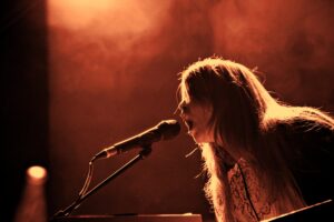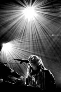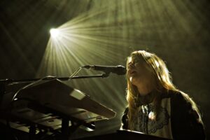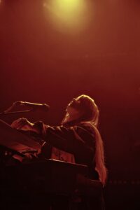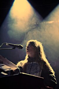 La fragilité de sa voix est aussi sa plus grande force, car elle est toujours maîtrisée et chargée de sens. En concert, cet effet est encore plus saisissant. Lorsqu’elle déploie davantage de puissance, elle peut se montrer féroce, puis soudain radieuse, riant pour elle-même ou avec ses musiciens. Leur dynamique est à la fois professionnelle et profondément humaine : chacun sait quand se concentrer sur les pédales, les boutons, les cordes ou les fûts, et comment trouver, dans l’instant du live, cette liberté qui permet à tous de lâcher prise et de se faire confiance les yeux fermés.