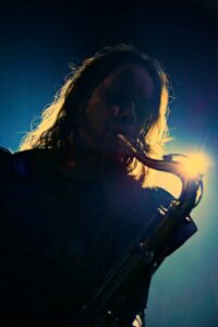 Rylander Löve ne se contente pas de produire des sons avec son saxophone : elle les arrache littéralement au silence, les projette au loin, puis les aspire à nouveau, nous entraînant avec eux. De plus en plus de spectateurs investissent la salle, mais on pourrait encore entendre une mouche voler.