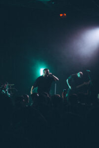 Place ensuite à Heart of a Coward, les Britanniques que les Parisiens n’avaient pas vus depuis longtemps. Dès l’intro, le ton est donné : rythmique martiale, voix puissantes, riffs écrasants. Le groupe balance une prestation ultra physique, sans répit, typée hardcore moderne. Les pits s’ouvrent, ça saute dans tous les sens, la température grimpe. Même sans que la salle soit encore totalement pleine, on sent déjà que la soirée va devenir intense. L’ambiance monte d’un cran, le public est chauffé à blanc pour la suite.