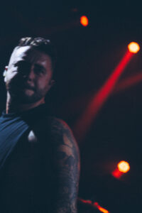 Le concert s’ouvre sur Into the Abyss : ça explose directement. Le son est massif, la salle enfin pleine hurle chaque refrain. Dès Never Enough, le chanteur s’avance sur les barricades, debout face à la foule, pour hurler toute sa rage et partager un vrai moment de communion. L’énergie est telle que même ceux venus par curiosité finissent par pogoter.