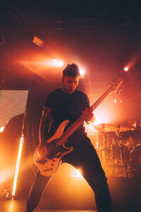 Puis les lumières s’éteignent. Les écrans s’allument. Annisokay entre sur scène dans une ambiance électrique. Le groupe allemand, désormais bien installé sur la scène metalcore européenne, a décidé de marquer le coup avec une scénographie impressionnante, chose rare pour le Trabendo : écrans multiples, visuels syncopés, atmosphère immersive.