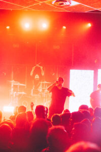 Le groupe joue avec une maîtrise scénique impressionnante : chaque morceau est soutenu par des visuels puissants, chaque drop est calculé pour faire bouger la foule. Les musiciens semblent portés par une vraie complicité et une sincère envie d’en découdre.