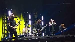 Meteor est magique, et se termine avec le public qui continue les chœurs de la chanson. Puis s’enchaîne Everything Ends, toute la salle sort son briquet comme au bon vieux temps et cela donne une atmosphère un peu féerique le temps d’une chanson. Mais cela ne dure pas, avec Royal Beggers qui, comme toujours, met tout le monde d’accord. C’est une de mes chansons préférées alors cela fait vraiment plaisir de voir qu’ils n’oublient pas leurs anciennes chansons, même s’il est difficile pour eux d’en jouer certaines, depuis la mort de Tom Searle il y a bientôt 10 ans. Mais il est toujours présent, preuve en est du T//S qui s’affiche toujours sur l’écran et du petit snippet de Gone With the Wind qui fait toujours plaisir; même s’il est un peu frustrant de ne pas entendre la chanson en entier. Il est compréhensible que ce soit difficile pour eux de la jouer, donc on se contente de quelques minutes, on apprécie; verse une larme en pensant à Tom, et on passe à la suite avec Doomsday (qui me fait pleurer à chaque fois) et Blackhole pour terminer ce concert mémorable.