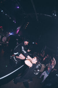 Then Freaks hits. The energy doesn’t drop, it climbs even higher. Vincent from NDKH joins the band on stage, then Aaron from ten56 jumps in too. The stage turns into a battlefield. On Dialysis: massive circle pit. Then Psychoactive Green Fairy. Long intro, the pressure builds slowly, then everything explodes. First crowd surf of the night. Zek ends up throwing the mic, jumping into the pit, starting the most violent moshpit of the night, then making his way back to the stage crowd surfing. Absolutely insane moment. At the end of the song, he says: