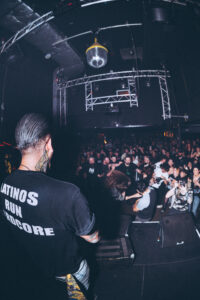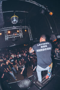 The first song, Hiram, triggered the pit instantly. No warm-up, no slow build, the violence started right away. Zek was wearing a Latino Run Hardcore T-shirt, a perfect callback to the Latin music that had been playing before the show. On Frozen Vision, Zek already had complete control over the crowd. He called people out, told them to move, told them to split the pit in half, and of course, the crowd did exactly that. Philosophical Research Society confirmed that the room was completely locked in. Zek shouted: