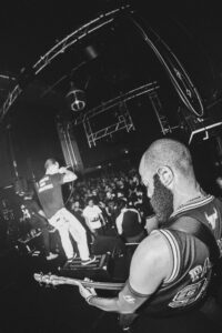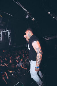 Zek ne fait pas que chanter. Il parle au public en permanence. Intro, outro, entre les morceaux, il ne lâche jamais la foule. Son langage est familier, particulièrement enthousiaste, et il a une forme de poésie dans l’agressivité. Il ne chauffe pas la salle, il vit la salle. Sur Unable to Connect, il annonce :