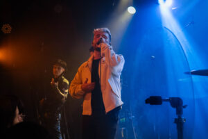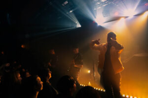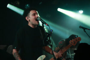 Petit break puis Ashen monte sur scène. Même si chaque groupe avait son publique on ressent qui était la tête d’affiche ce soir là. Le volume sonore a considérablement augmenté, des grosses basses posent l’intro, le public cri. Les premiers slammers apparaissent,“Je veux voir tout le monde sauter”, annonce le chanteur, et comme prévu… tout le monde saute. Le pogo est immédiatement violent. On est littéralement deux minutes dans le set que déjà ça se percute de tous les côtés. Sur Crystal Tears, reconnue en une fraction de seconde par toute la salle, les poings se lèvent comme un seul bloc, les voix scandent l’intro (“Therese, a figure in the dark…”), et on sent le sol bouger sous les impacts du pogo. On annonce que le concert est filmé et le public déjà en ébullition se donne encore plus. Ashen enchaîne avec Dsire, Ça saute, ça crie, ça pogotte sans interruption. Même les plus blasés dans le fond se sont laissés prendre au jeu. Arrive la reprise de Smells Like Teen Spirit. Et là… même les derniers accrochés au mur, les mecs venus pour le pop-punk ou les accompagnants un peu perdus : tout le monde décolle. “Vous connaissez tous les paroles alors chantez”, qu’il dit. Et oui, tout le monde les connaissait. Ça hurle, ça secoue la tête, ça relance le pogo comme si c’était le premier morceau du set. L’ambiance est littéralement à son pic. Les titres s’enchaînent, pas le temps de souffler. Les slammers pleuvent. Les claps se font sans qu’on demande. Il y a cette forme d’euphorie collective où plus personne ne sait vraiment où commence un morceau et où finit le précédent, mais tout le monde suit. Puis, soudain, rupture. Un message d’espoir, sobre, simple, humain. “Même dans les moments les plus sombres il y a toujours une lumière au bout du tunnel.” Le public se calme d’un seul coup. Oblivion commence, douceur inattendue dans le chaos. Les flashes apparaissent un par un dans la salle (pas en masse, mais suffisamment pour faire joli). Plus aucun pogo. Juste des mains en forme de cœur, des petites ballerines improvisées dans la fosse. “Après ce moment de communion, prêts à faire la fête ?”L’intro du morceau suivant est gentille, presque trompeuse, mais très vite ça repart sur un boum-boum solide, pas trop rapide mais assez lourd pour relancer les slammers. Les épaules se remettent à tourner, les corps se remettent à voler au-dessus du public. La fin du morceau prend une tournure presque techno, très efficace en live, et on se retrouve tous embarqués dans ce tunnel lumineux sans savoir exactement comment on est arrivés là.