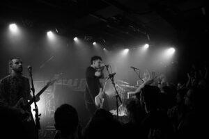 C’est Mirabelle. qui prend le relais ! Pour être tout à fait honnête, après les avoir vus au Kave Fest quelques mois plus tôt, c’est pour eux que je suis venue ce soir-là. Ils ouvrent avec Big Sleep puis 6 feet underground. Imposent une ambiance punk voir pop-punk avec des arrière-goûts non désagréables d’années 2000. La dernière fois qu’ils sont venus à la Maroquinerie ils étaient ivres morts, expliquent-ils au publique, cette fois… “On a grandit”, tout le monde rit ensemble un bon coup avant que le groupe enchaine sur The Worst qui confirme ma théorie que chaque groupe a ses fans dans la salle. “Ceux qui ont une bonne mutuelle nici, coudes, genoux, vous savez”, et le pogo s’enclenche pour la fin du morceau avant d’embrayer sur like my favorite liquor you make me wanna sing. A la fin de celui-ci, le groupe présente une nouvelle chanson : “on la joue super bien vous allez être surpris”. Les premières notes se font entendre, faux départ un “tonnerre bouh” est demandé par le groupe lui-même avant de recommencer Crybaby, dans la bonne tonalité cette fois. Nouvelle chanson mais encore une fois le public ne faiblit pas. Toujours selon Mirabelle., “la prochaine chanson est une chanson un peu émotion alors si vous pouviez ouvrir le pit et vous taper sur la gueule”, il n’en faut pas plus à la fosse pour s’ouvrir tandis que The Night of my Murder s’amorce ; spoiler : ce n’est pas du tout une musique émotion et le public s’est tapé sur la gueule comme il se doit. La salle s’ouvre encore une fois pour Shitshow, avant dernier morceau du set. Les setlists, marquées sur des t-shirt, sont jetées dans la fosse -et quelle idée incroyable, les groupes s’il vous plaît faites ça- ! Ultime morceau pour Mirabelle, Streetlight, joué à 3000 à l’heure, ça clap, ça saute, ça se rentre dedans, digne façon de conclure ce set enragé qui fut une agréable transition entre Barren et Ashen.