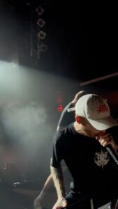 Quand Varials débarque, c’est pour intensifier ce Chaos sur la Péniche. Dès le départ, la brutalité prend le contrôle, et le public est tout de suite en phase. Ça se déchaîne à fond dans la fosse, et le premier slam de la soirée fait son entrée. Un grand « Thank you guys ! » résonne, suivi d’un feat explosif. Le chanteur, pied du micro en main, balance un morceau en voix claire, qui ajoute une profondeur unique au set. Le meilleur moment ? La fosse qui s’enflamme pour le morceau phare, avec un circle pit digne des plus grands shows. Admiratif du batteur Sean Rauchut qui tient la cadence, et cerise sur le gâteau : le chanteur de To the Grave débarque masqué pour un feat final. C’est le chaos absolu, maîtrisé à la perfection.