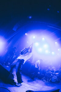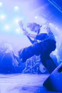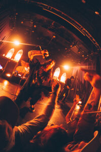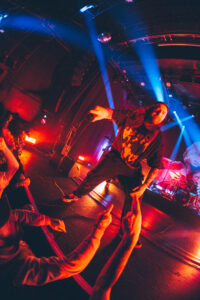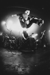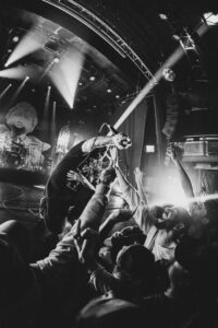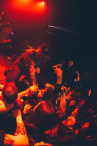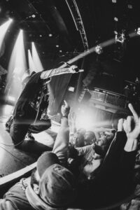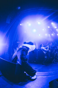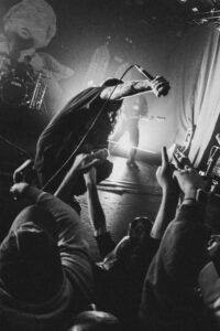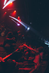 Next come “To Hear of War” and “Stranger”, during which the God Complex vocalist jumps on stage for a completely furious guest appearance. On “Witness”, the stage dives become nonstop. The band’s photographer, the stage manager, and even the singer laugh when they see the chaos unfolding. A surreal moment happens during “A Praise No Artery Intact”: the guitarist uses his mic stand like a bow while playing his guitar. Pure nonsense in the best way. The band keeps going with “Monument” and then “Heaven Let Them Die”, greeted by screams from the very first notes.