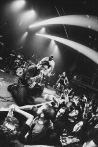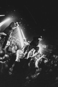Avec Sunami, on change encore de dimension. Leur réputation les précède, et dès “Six”, c’est exactement ce qu’on attendait : la guerre totale. La caisse claire claque comme un coup de fusil, et immédiatement les premiers stage dives partent. Le chanteur présente le groupe et remercie la foule. Mais très vite le chaos reprend : les plongeons deviennent de plus en plus violents.