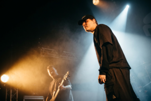 When he introduces “Shura” as a new track and calls for headbanging, nobody needs to be told twice, it hits hard and instantly clicks with the crowd. “Loose Ends” brings a quick wholesome moment, saying it’s their first time in Paris, the city is beautiful… but we’re still too soft. Immediate effect: the pit finally wakes up.