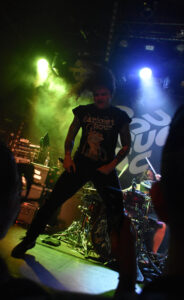 “Hail to the Hellfire” serves as both an introduction and a demand for even more energy (like that was even possible), full crowd jumping, followed by a huge wall of death. Then “Six Feet Under” hits, and the vocalist starts calling for stage dives… bad idea (or maybe the best idea), because things go completely off the rails. At one point, a guitarist literally ends up on the merch table on the side.